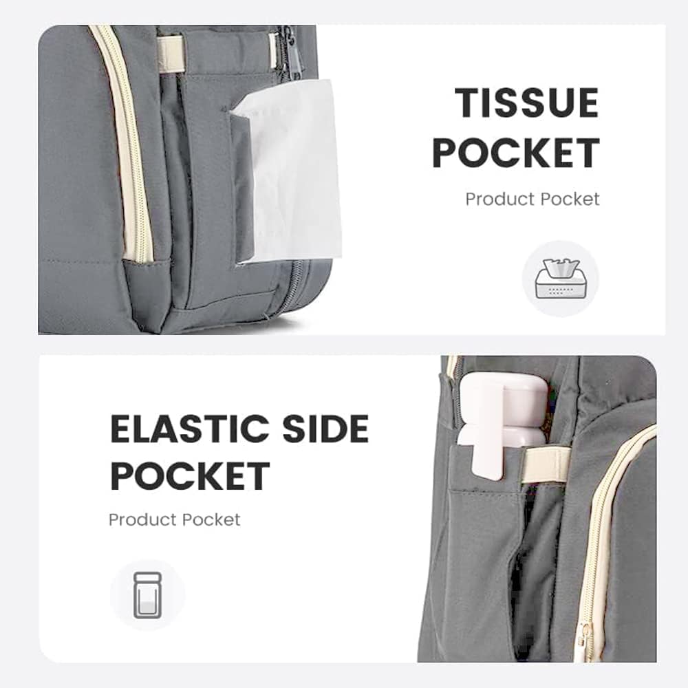 【Large Capacity Baby bag】:Dimensions: 15.8*7.9*12.2 inch; Capacity: 20-35L. This diaper bag has enough capacity for baby boys' or girls' necessities such as baby bottles, diapers, bibs, tissues, wipes, and other baby toiletries; as well as mom's phone, wallet, keys, power bank, tablet, water bottle , and other daily necessities. Each individual pocket helps to better store different necessities and keep things organized.