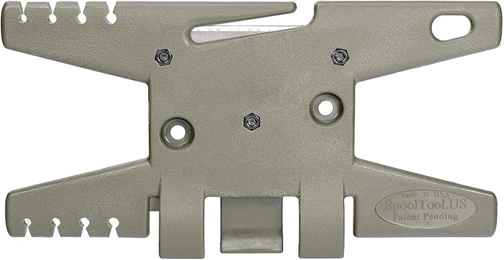 The Spool Tool is the only Multifunctional Tool designed for storing, cutting, and finishing Paracord. Shatterproof Stainless Steel Utility Blade (Replaceable). All Stainless Steel Hardware (2 Hatch nuts and screws, plus one spare set-we all loose things). 8 multisize proprietary burn slots, for finishing the ends of heated paracord. Integrated MINI BIC Lighter retention system. (Lighter not included) The Spool Tool is Made in America. Built and Designed for a Lifetime of Use. Warranted by the factory to be free from defects in material and workmanship for life. Hold up to 100' of paracord Weighs just 2 oz when empty Lanyard/carabiner hole Measures 6" x 3.5" Color: Foliage Green