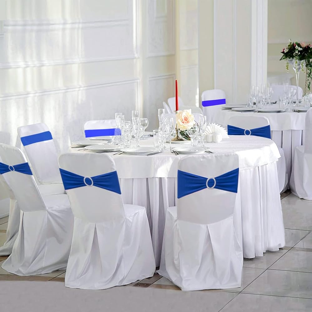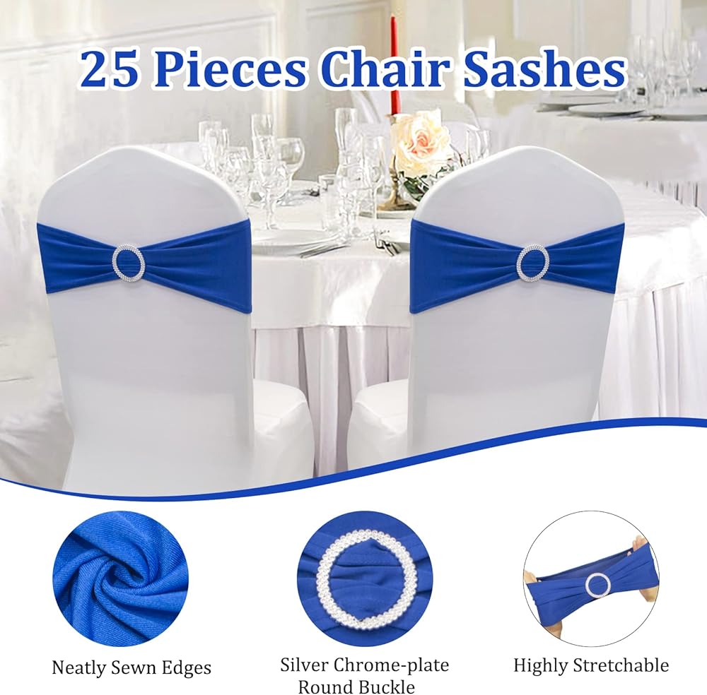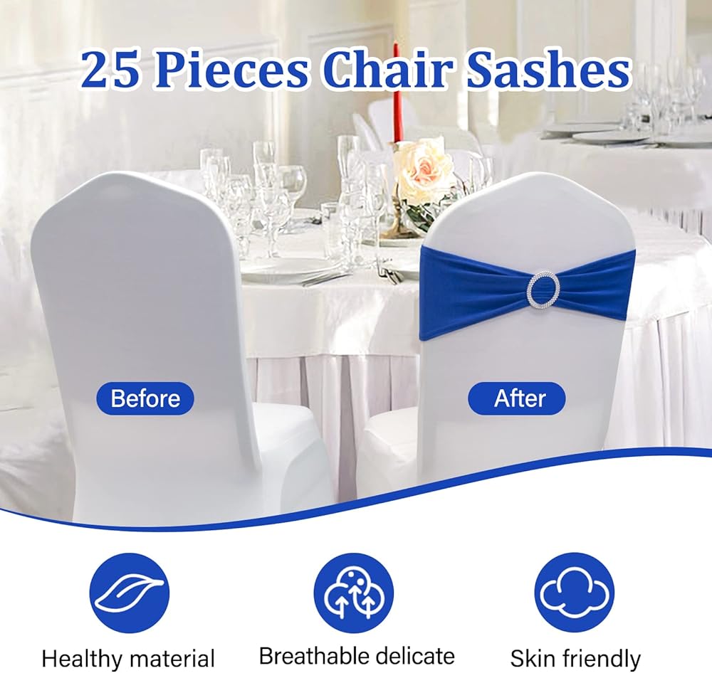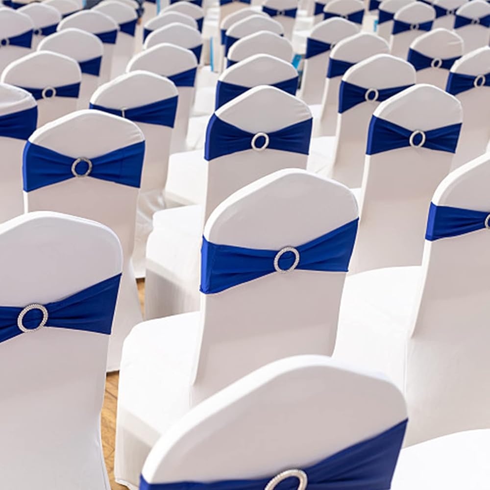 [PREMIUM QUALITY MATERIAL]: 90% Polyester/10% Spandex ,It has high elasticity,very soft and smooth,Each Chair Bands Tieswith Buckle comes with a sliding round plastic buckle.