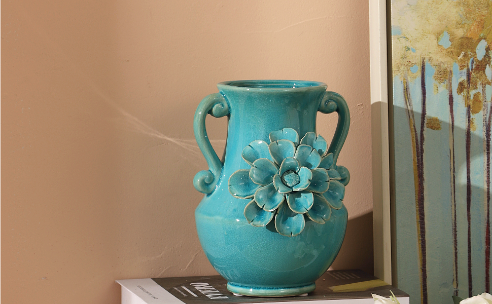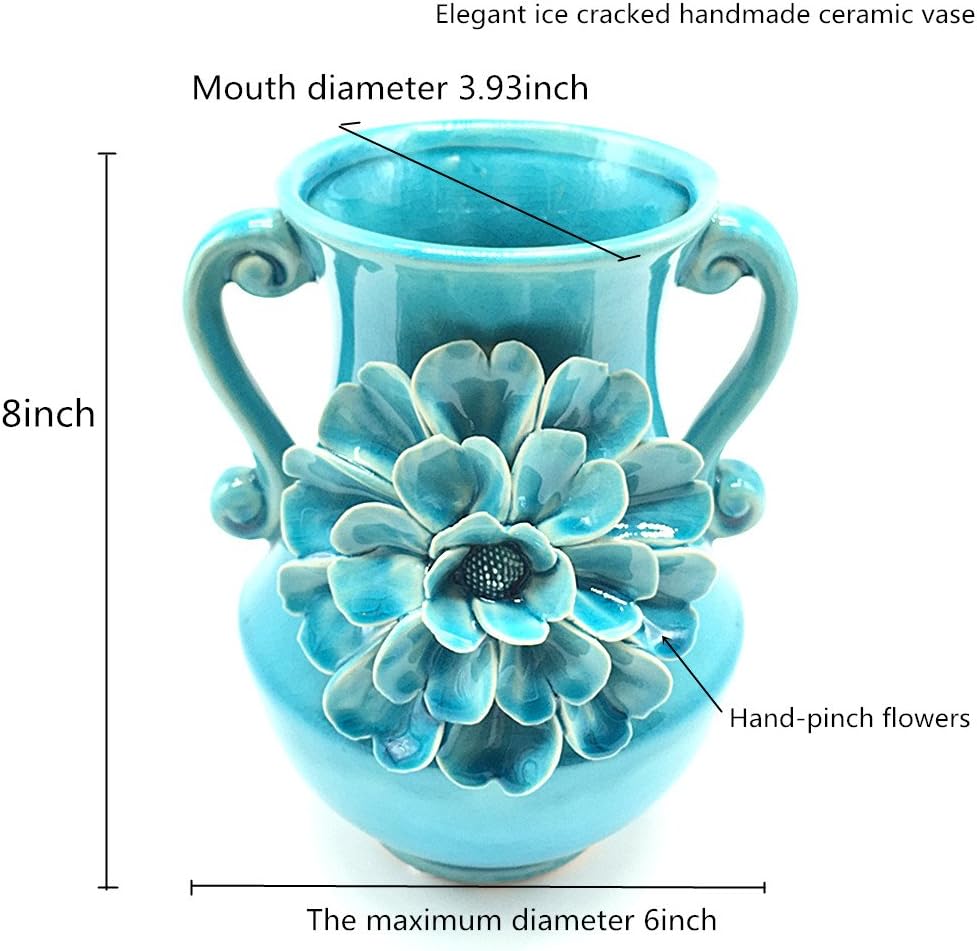 Anding Vase Home Decoration Blue Crack Vase Handmade Big Flowers Kitchen Vase
