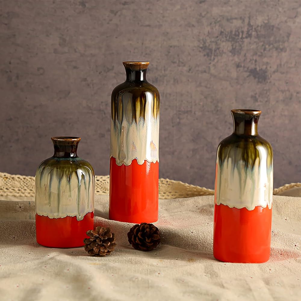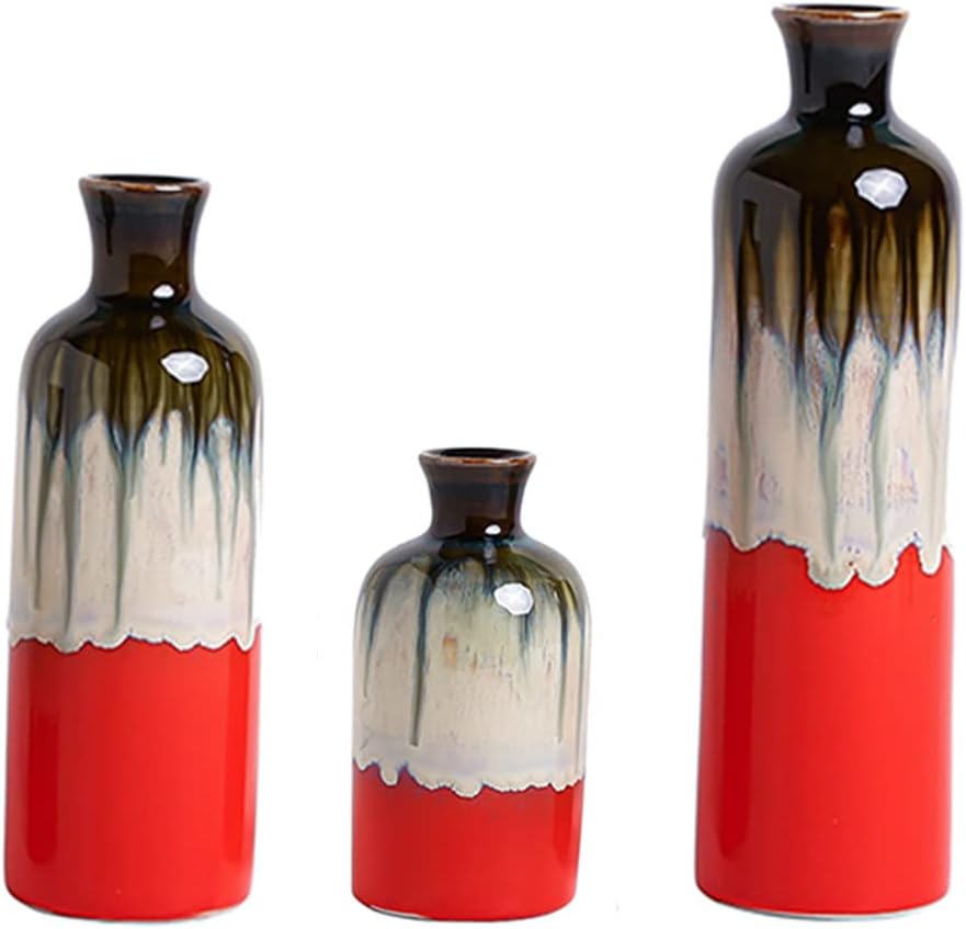 Anding Three-Piece Red Ceramic Vase, Special Design Style Red Color Mixing, Smooth and Bright Glazed Surface, Home Decoration, Living Room Decoration, Party Display, Modern Flower Vase (A1062set)