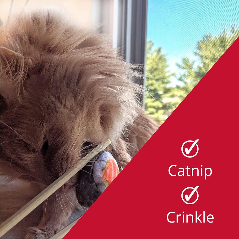 CATNIP CAT TOY - Our 3-inch catnip-infused plush toy is a bundle of feline fun, featuring irresistible catnip and a delightful crinkle sound. Your cat will be captivated, batting it around, pouncing with glee, and happily rubbing against it for hours on end. Packed with extra catnip, this small toy ensures your kitty stays engaged in playtime.