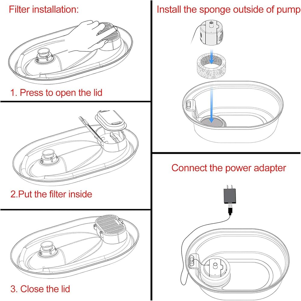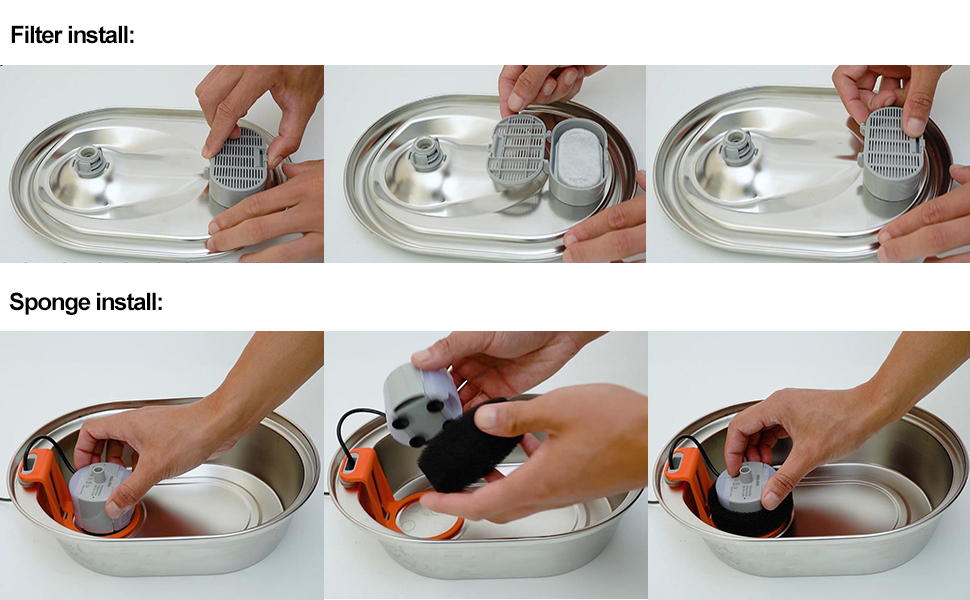【Notice】To Prevent The Activated Carbon Dust (Which Will Not Harm Your Pets) From Shedding Into Water, Please Soak The Filter In Water For 5 Minutes And Rinse It Thoroughly Under Running Water Before Use. According To Your Pet's Drinking Frequency and The Number of Pets Using The Fountain, Change The Filter Every 2-4 Weeks.