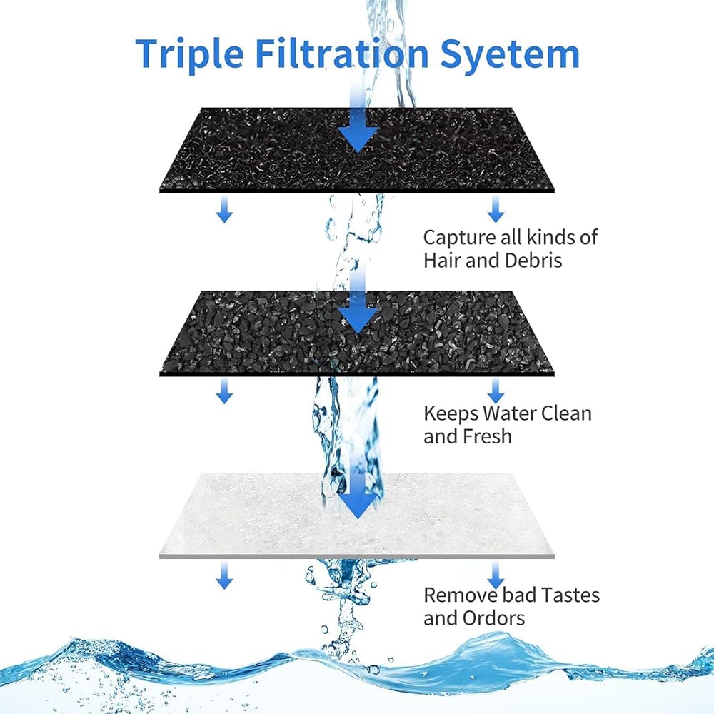 【For Your Pet Healthy】Each Filter Is Composed Of Activated Carbon And Non-Woven Fabric. They Can Filter Hair, Heavy Metals, And Improve The Taste Of The Water So That Pets Can Drink Clean And Fresh Water All Day