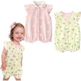 🍭Design:Baby one-piece set romper with different flower patterns design, patchwork colors. Placket and crotch are designed with snap buttons, easy to put on and take off.