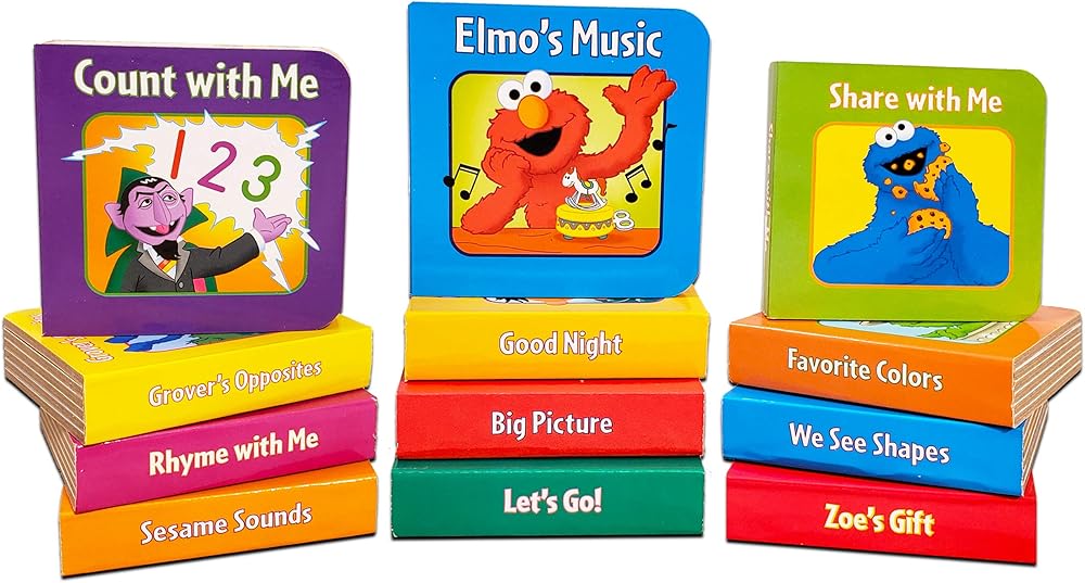 Sesame Street Board Books Set Toddlers Babies Bundle ~ Pack of 12 Chunky My First Library Board Book Block with Stickers (Elmo Books for Infants)