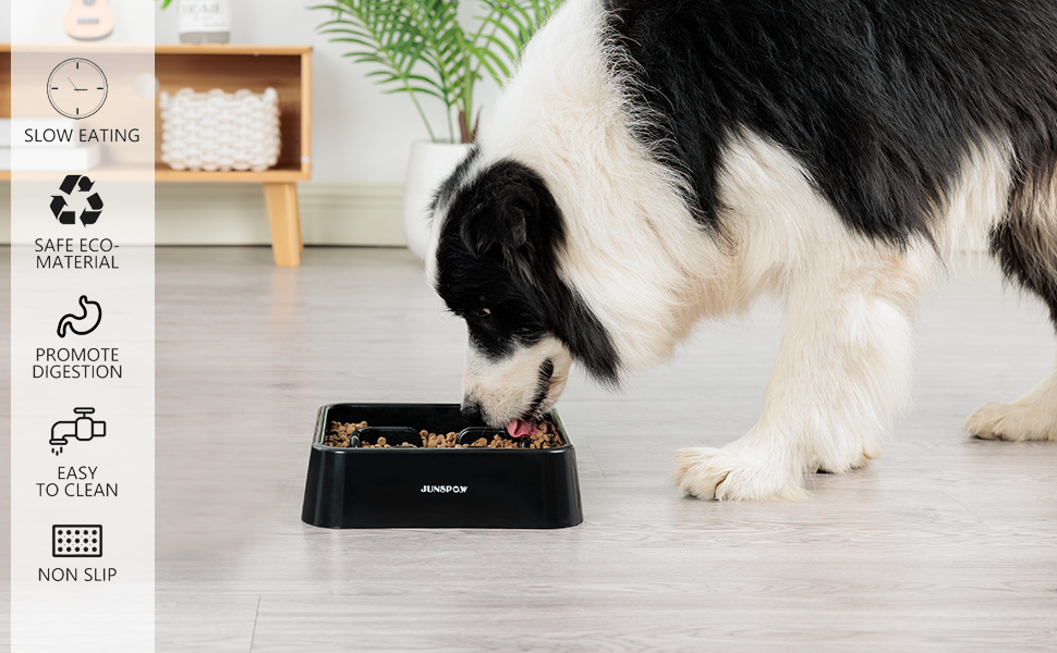 🐶NON-SLIP AND SAFE MATERIALS🐶 - JUNSPOW slow feeder bowl is made with food safe, high-strength ABS materials, secure your pets to use. Thick materials and non-slip pads can effectively reduce slippage and damage to the floor when pets eat. The widened base can prevent the bowl from being overturned by pets.