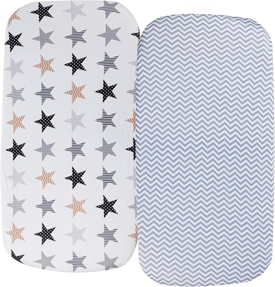 Stretchy Bassinet Sheets 33" x 20" for Baby Girl and Boy, Compatible with Mika Micky, Baby Delight, Dream On Me, AMKE, ANGELBLISS, Maxi-COSI Baby Bedside Bassinet Mattress, 2 Pack, Chevron and Stars