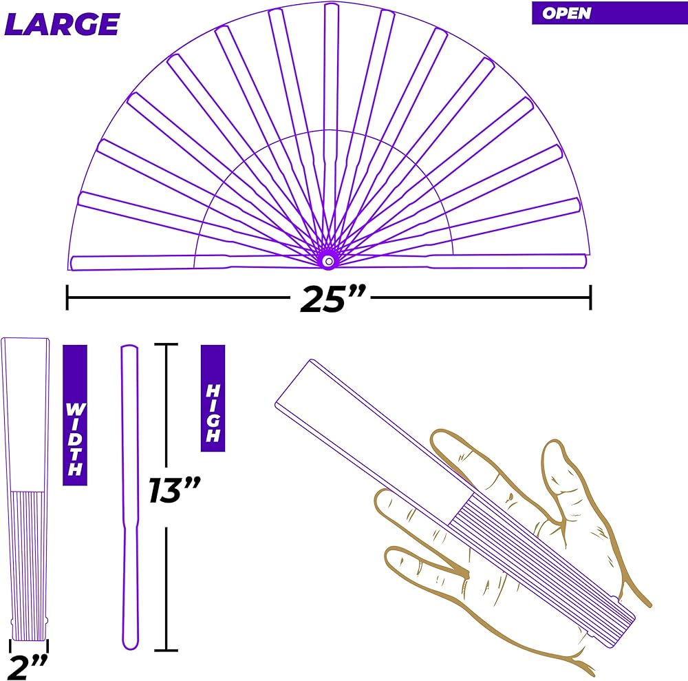 Mini fan, perfect pocket size made with resistant nylon and plastic ribs with pride flag rainbow colors. Perfect for outside activities, concerts, and raves. A low-cost essential, with the perfect size to keep yourself cool during this summer. Galaxy Printing