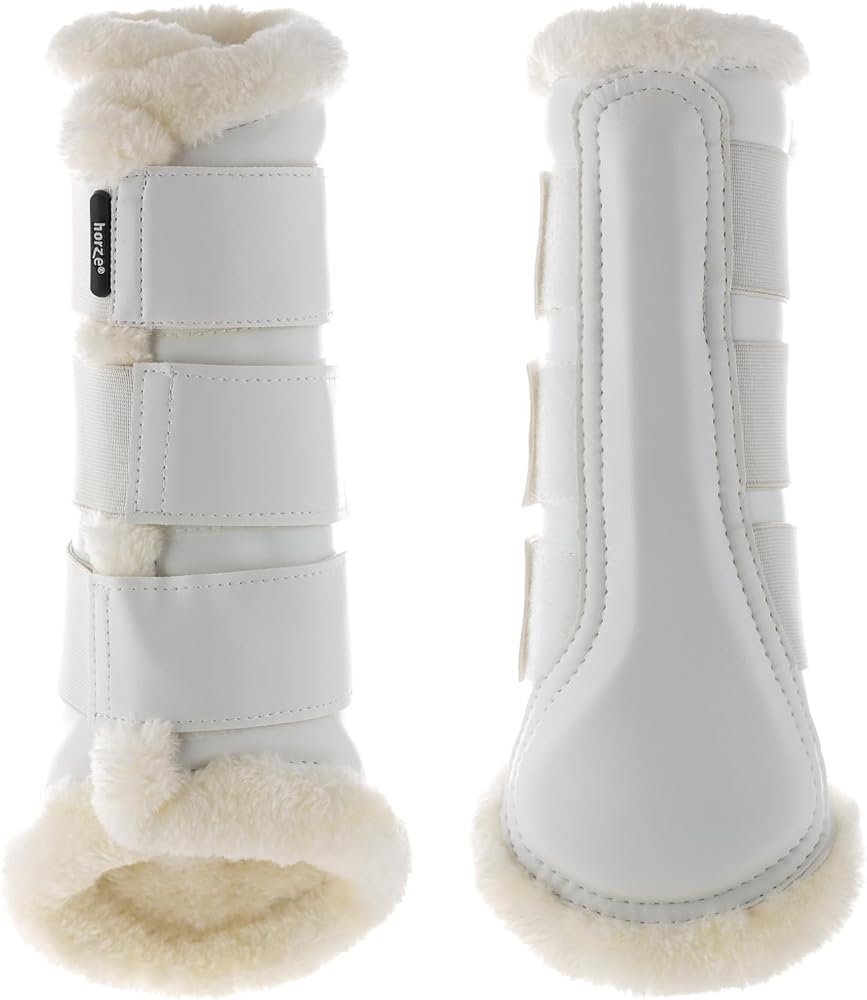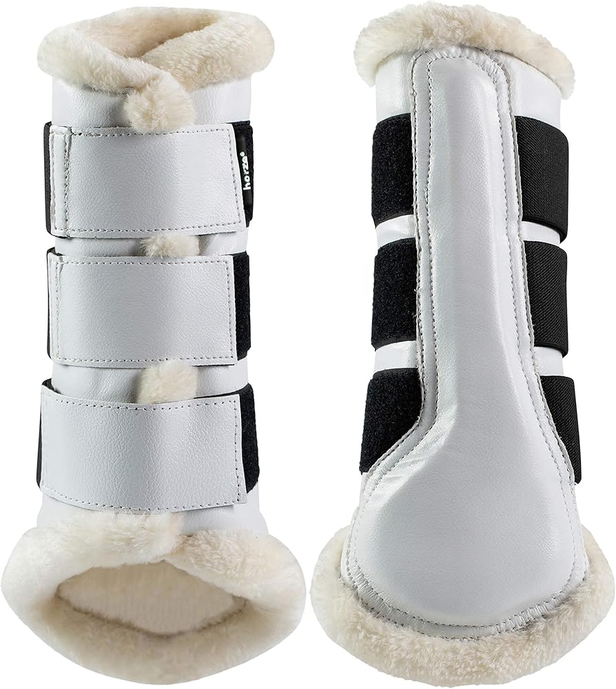 Give your horse comfort and protection with the Horze Wilton Brushing Boots with Faux Fur Pile Lining. Luxurious softness combined with just enough support make the Horze Wilton Brushing Boots with Faux Fur Pile Lining a must-have. The soft faux-fur lining cradles the horse's tendons and canon bone with soft padding while the outer shell is durable and strong. This pair of boots attaches with three hook and loop fastener closures so they will stay in place. Great for schooling all winter long.