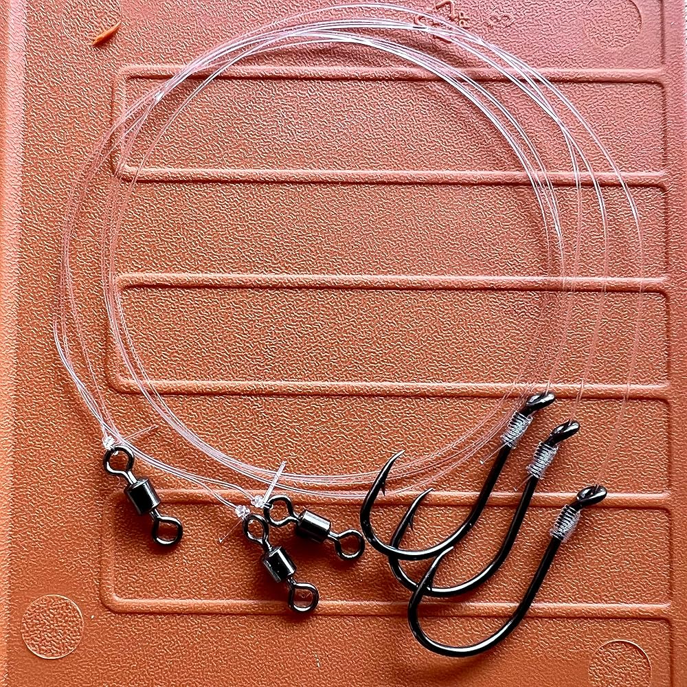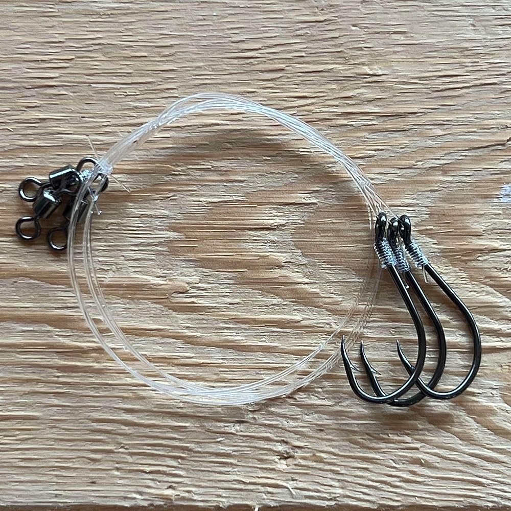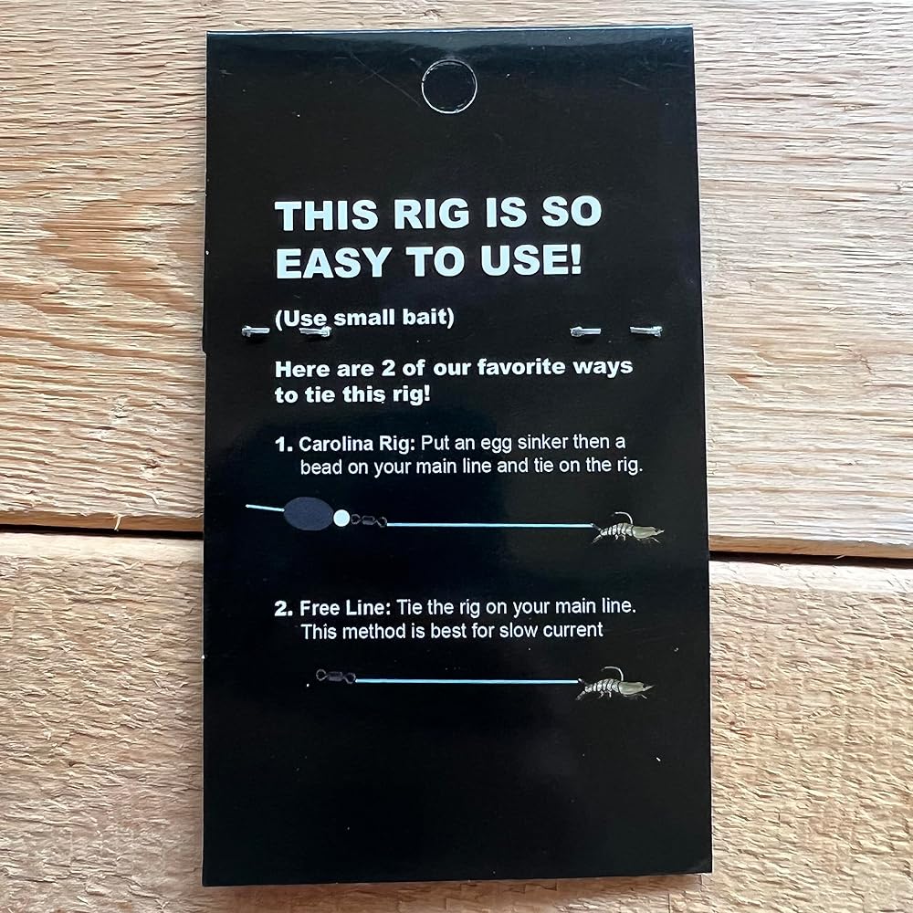 I use this rig to catch fish that are feeding on smaller baits. The small hook and light line allow for small baits to swim naturally without looking conspicuous to big predator fish. It is ideal for use as a freeline rig, carolina rig or on a float rig w/ small live or dead baits such as shrimp, fiddler crabs, minnows, clams and squid. I use this rig for snappers, speckled trout, redfish and flounders. My favorite bait to use with this rig is live shrimp and live mud minnows. Put a split shot on and a small piece of cutbait, and you will have countless hours of fun. Includes 3 hand tied rigs per pack. This rig is tied w/ lightweight (15#) monofilament line and small ( size 1) hooks.