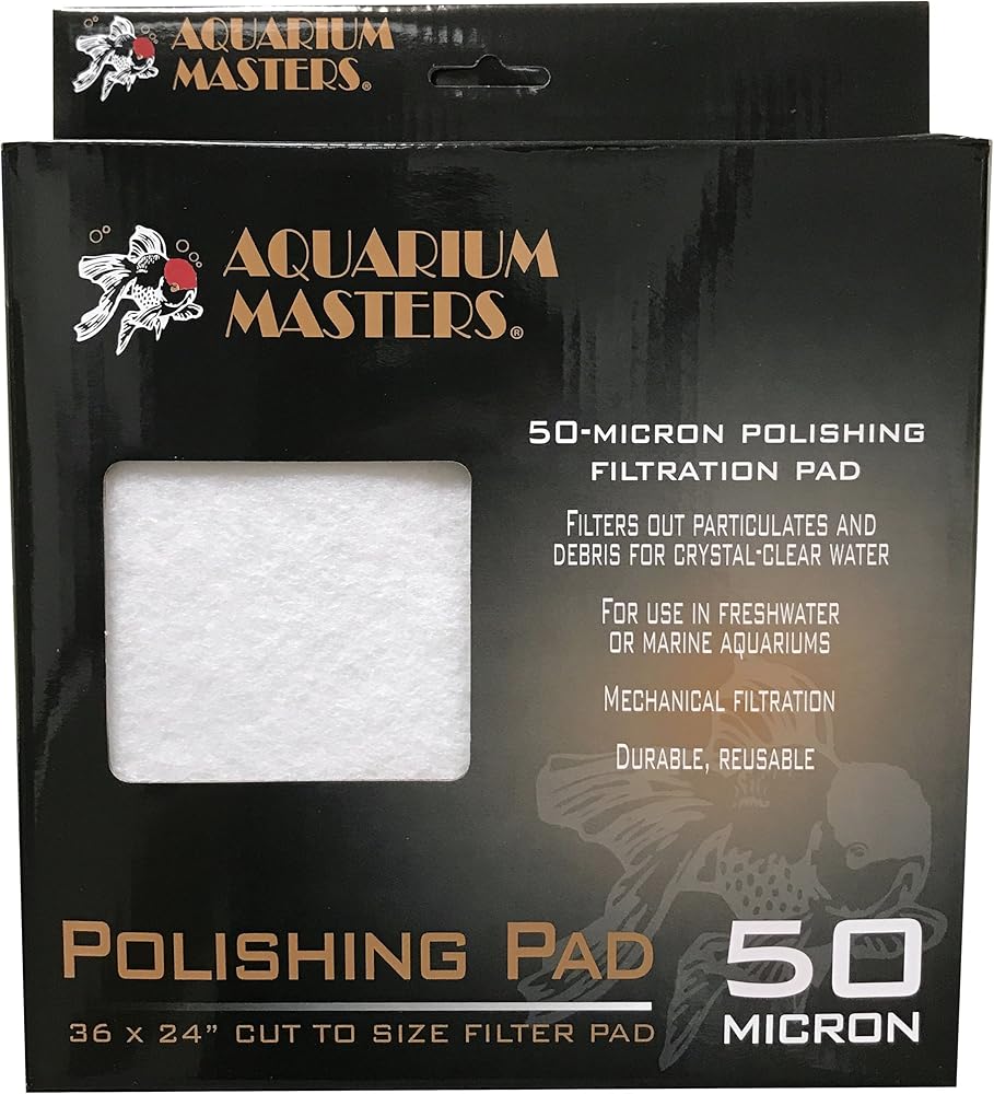 Our premium 50 micron polishing filter pad provides excellent mechanical filtration. The dense fiber network traps fine to large particles and debris which helps significantly reduce harmful ammonia-producing organic matter in your aquarium while protecting your aquarium equipment from debris such as sand and small rocks. Our premium solid construction 50 micron polishing filter pad allows you to cut to fit any size filtration compartment with its industry leading 36x24x0.125" size. Our premium filter pad is perfect for wet/dry, sumps, aquaponic systems and so much more! The premium pad can be combine with other carbon, nitrate reducer, and ammonia reducing pads. Bring clarity to your aquarium with our professional grade premium 50 micron polishing filter pad. Simply place the premium pad in the path of flowing water to trap large and very fine debris and particulates. Our premium polishing 50 micron filter pad is very efficient at trapping fine particulates, so regular cleaning is necessary to maintain the optimal performance. Filter pads are an essential part to keeping aquarium water clear and clean.