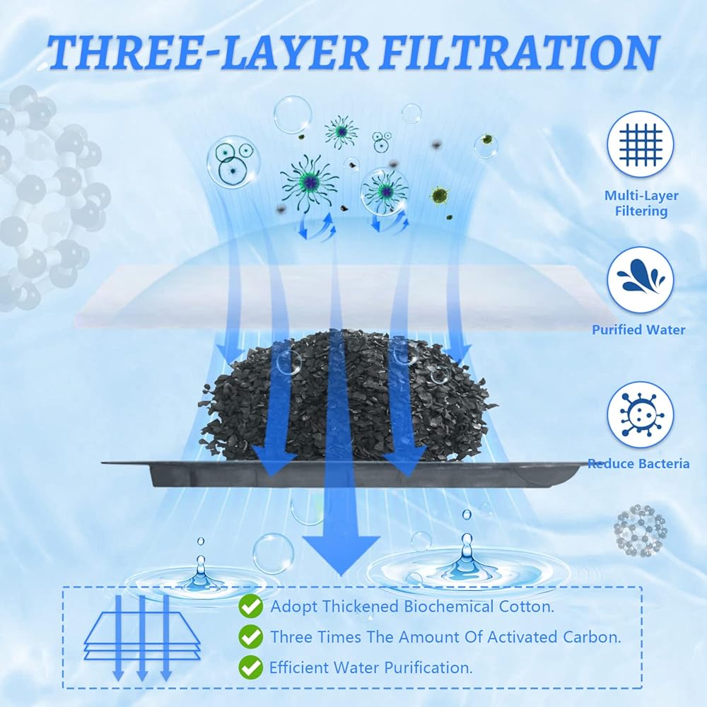 🐟【Thick Cotton&More Carbon】This aquarium filter cartridge replacement cotton is made of thickened biochemical,non-printing and dyeing pure cotton,no chemicals were added which can filter and absorb 99% of debris which is beneficial to the health and growth of fish.