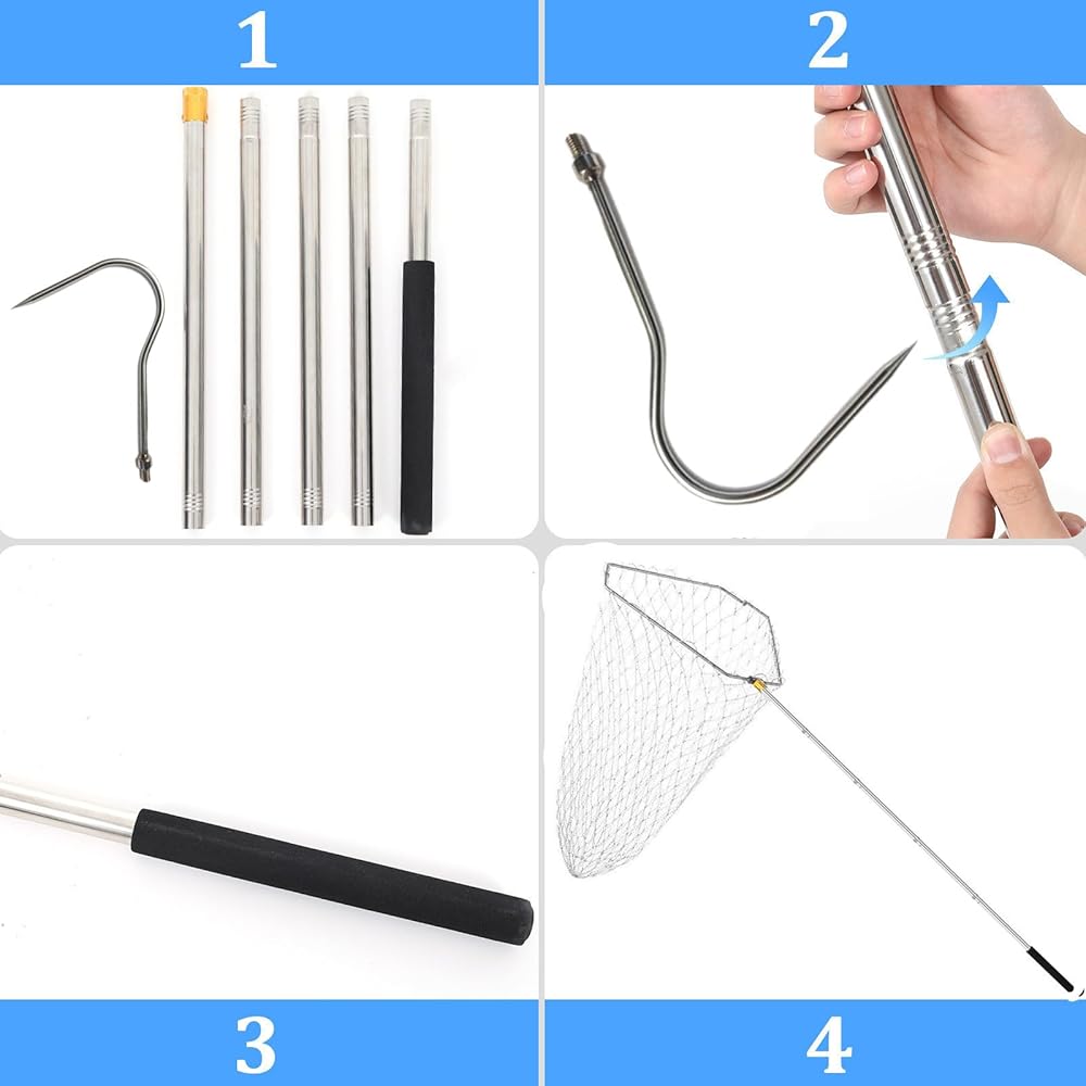 1. 71-Inch Extended Telescopic Hook Rod Fishing Gaff Fish Gaff is a multi-functional fishing accessory that can be used for flounder gigging, fish spearing, fishing netting, and more.
