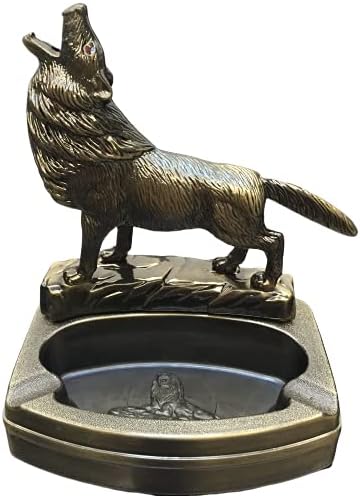 Linkbest منفضة سجائر سجائر رماد السجائر للمنزل في الأماكن المغلقة مجموعات منافض السجائر المزخرفة الرائعة للأعشاب مع ولاعة البيوتان على شكل ذئب (بدون غاز)