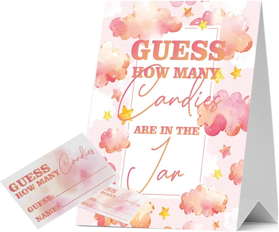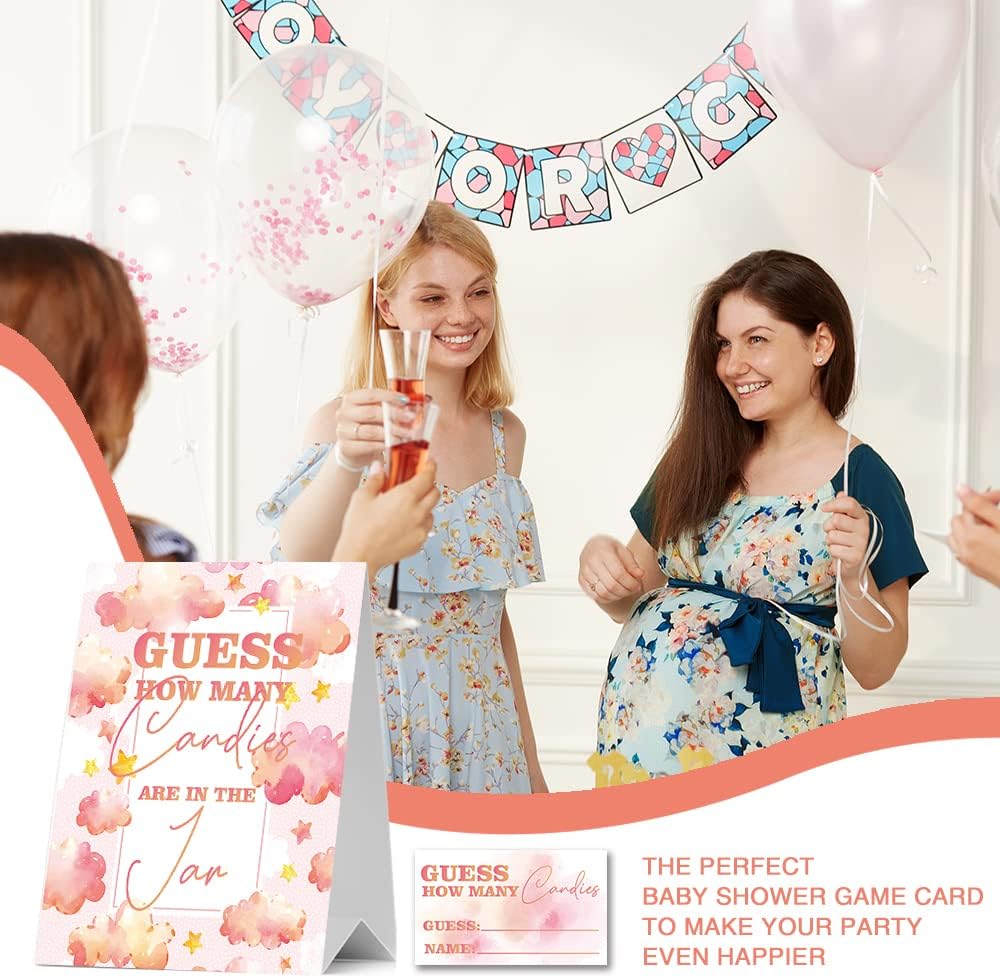 JIRIM-BEUTY Guess How Many Candies Guess How Many Baby Shower Games, Pack of 1 Logo and 50 Cards, Baby Shower Signs, Baby Shower Invitation Set, Bridal Shower Sign, Gender Reveal - JRM304