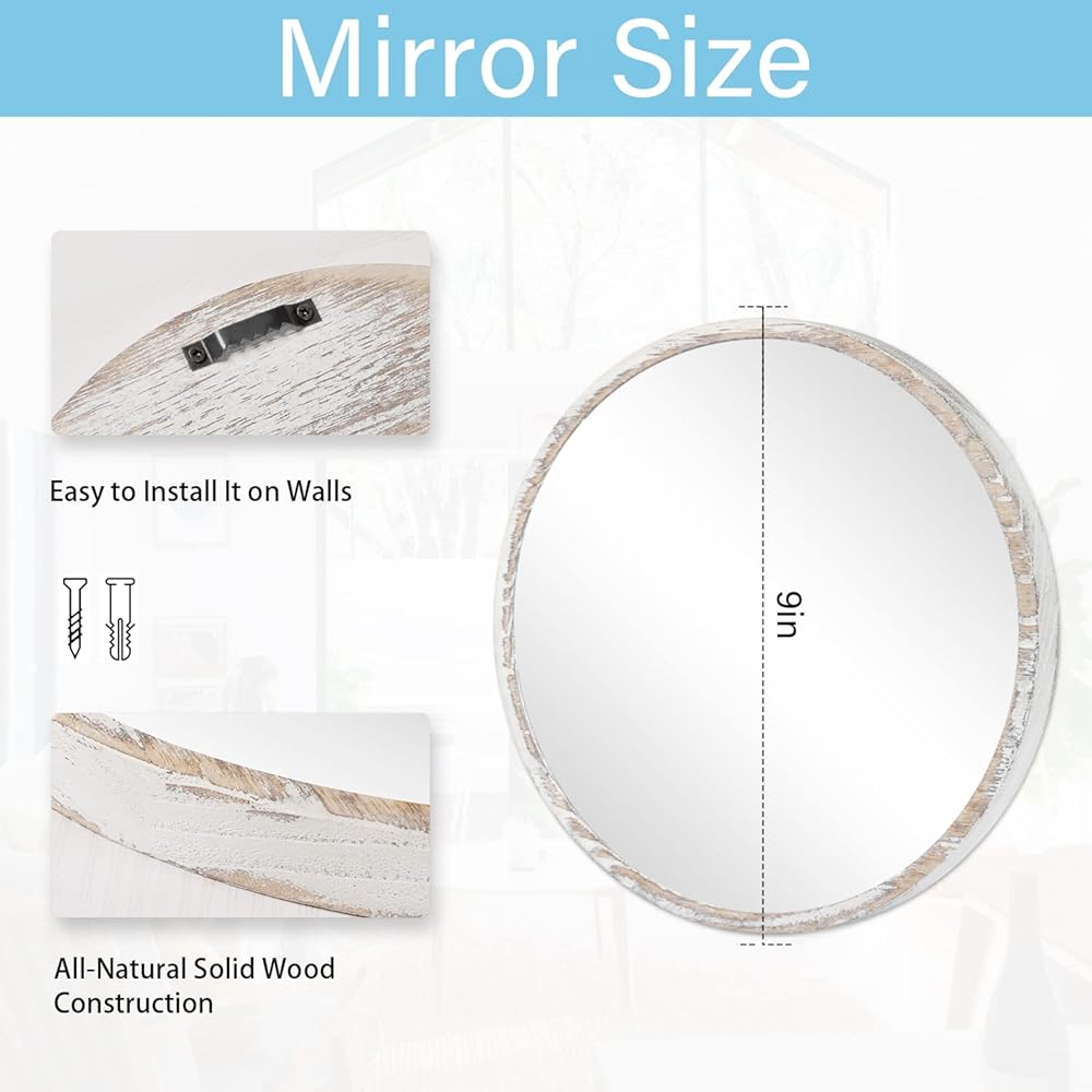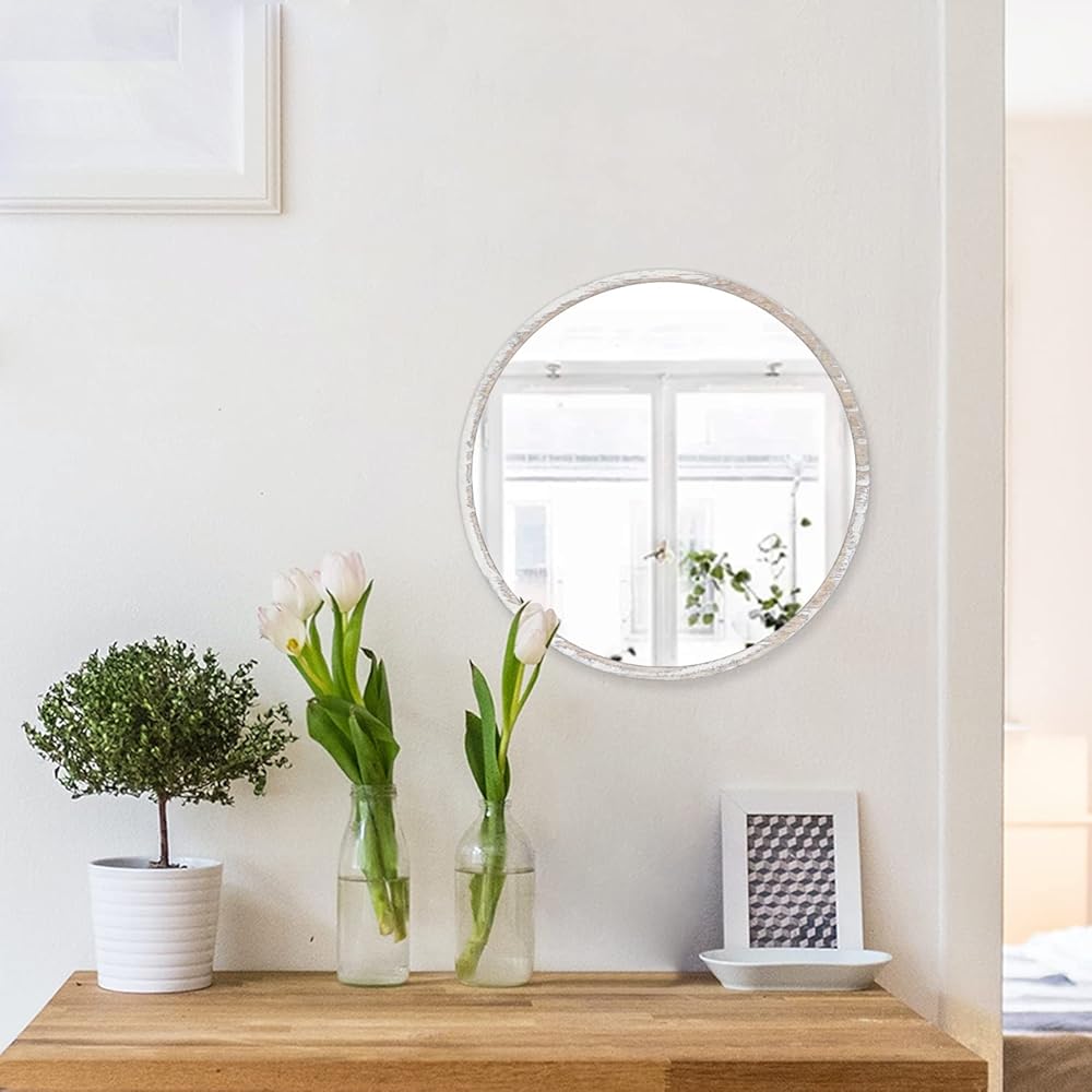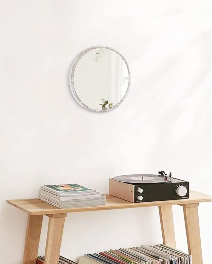 Our retro round bathroom mirror is made of quality solid wood,Mirror is deep set into the frame, excellent quality with premium materials and fine craft for long use life.