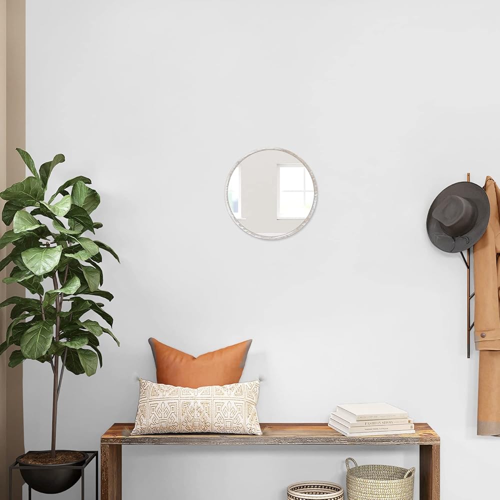 The classic round design with wood trim fits perfectly to a bathroom vanity mirror or an accent mirror for any wall in your home