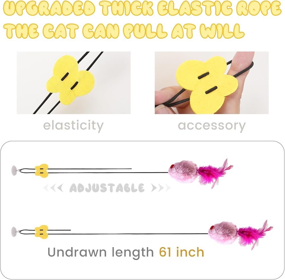 • Easy Installation: The hook and loop design of the Hanging Mouse Cat Toy allows it to be attached to door beams, door frames, door handle bases, or walls. No need for any special tools; simply hang this Hanging Mouse Cat Toy at a suitable height, such as a doorframe or furniture, and let your cat enjoy the fun instantly. It also features adjustable height to cater to your cat's preferred play style.