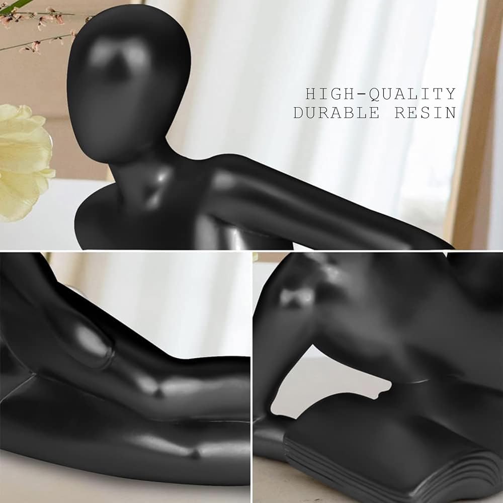 Black Home Decor Thinker Reading Women Statue for Living Room, Modern Shelf Decor Accent Decorations, Resin Collectible Figurines Display for Office Bedroom Table Desk,Black