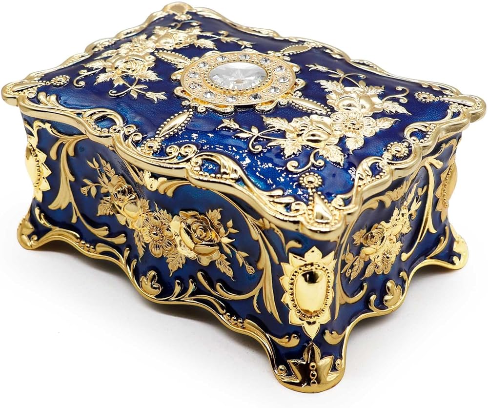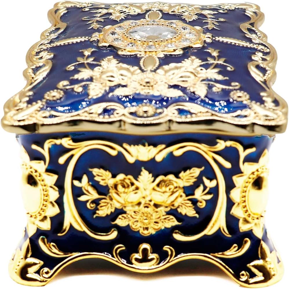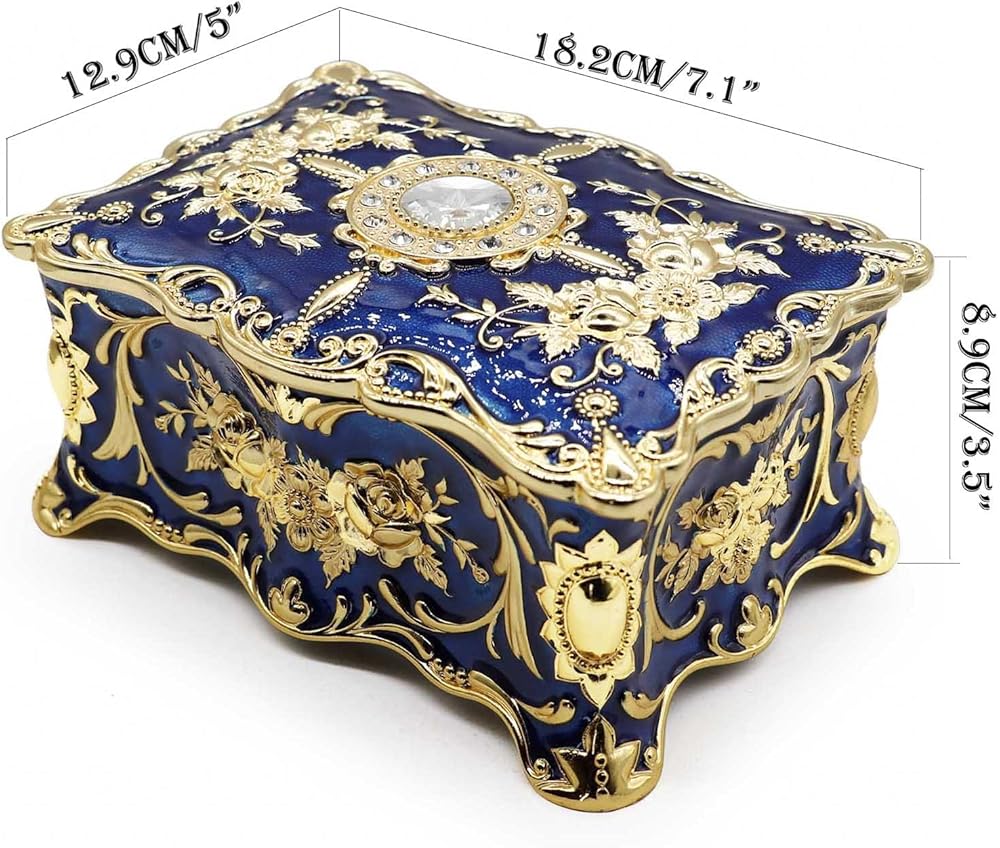 【Beautiful Decorative Box】 - Exquisite engraved, high-quality workmanship. Decorated with a glittering crystal on the top lid. Perfect gift for yourself or friends for birthday, Christmas, also a perfect jewelry box to put your precious jewelry