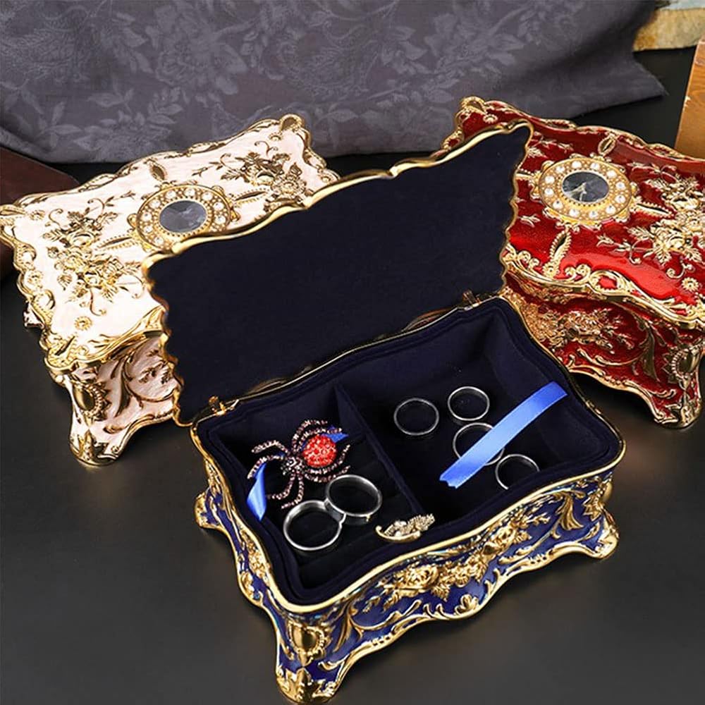 【Metallic Jewelry Box】 - Made of durable Zinc Alloy material, this jewelry box won't fade or tarnish. It has soft black velvet lining inside, which can protect your favorite jewelry from dust and scratches.