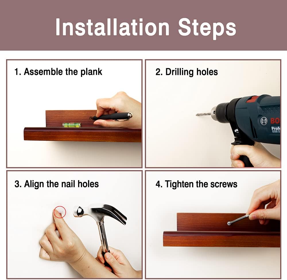 EASY LNSTALLATION-With the necessary wall hanging hardware and easy-to-understand instructions, pre-determine the wall space for hanging the floating shelf, and mark a reasonable installation size on the wall. You can then easily mount it on the wall by using the accessories included in the package! And you'll get a very useful set of shelves for wall storage!