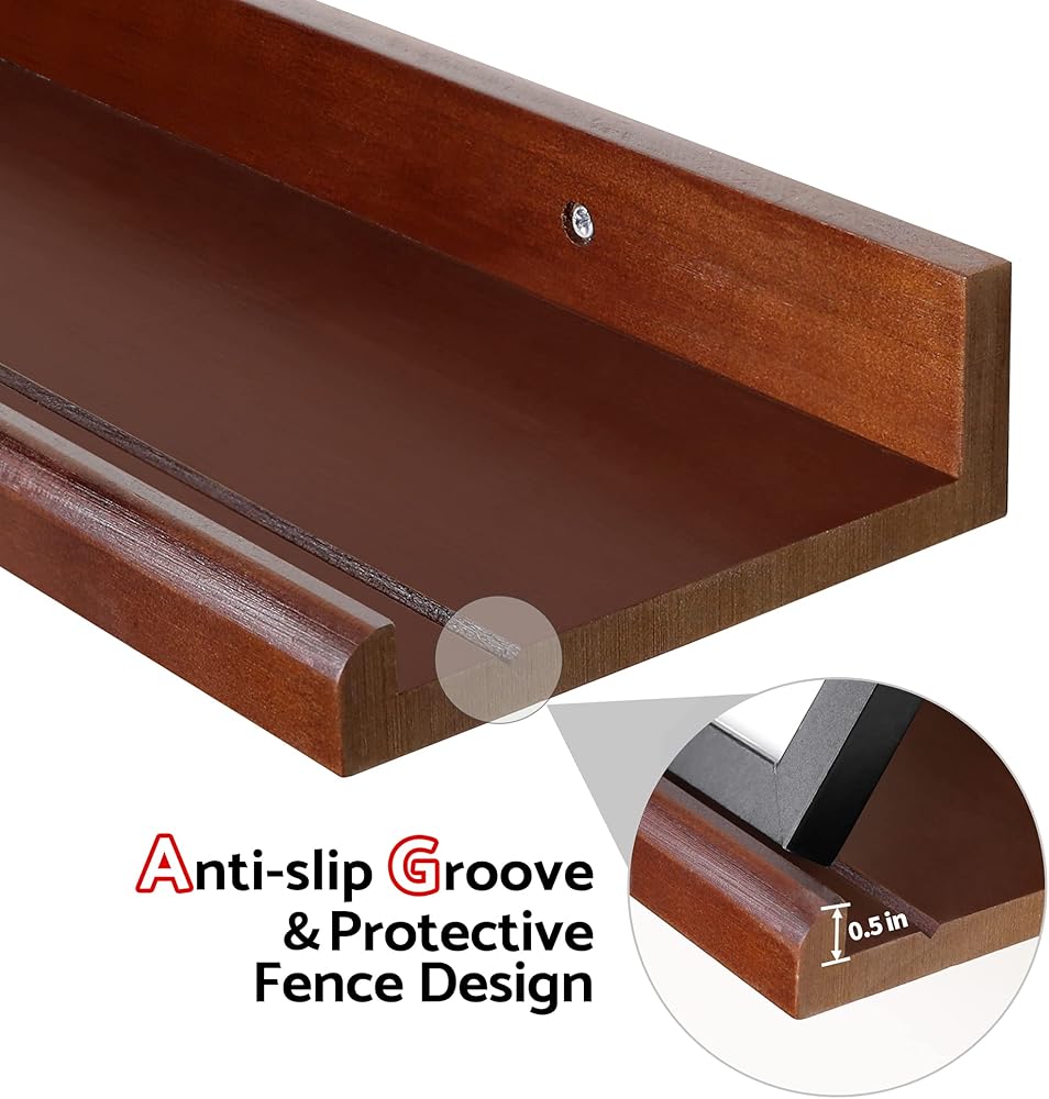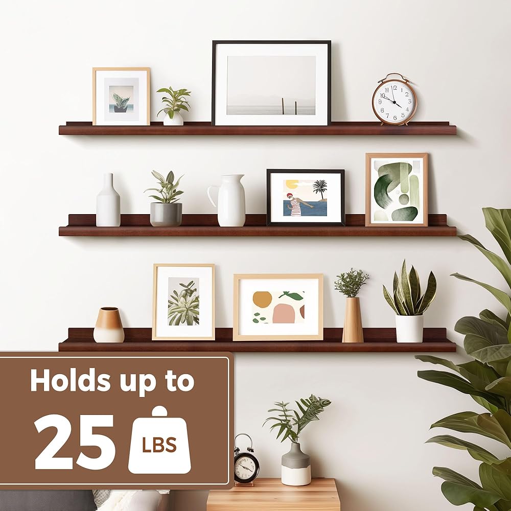 EXCELLENT QUALITY-These black picture ledge shelves are made of solid wood, with a flat surface, no debris on the edges, high quality, sturdiness and durability, no peculiar smell, and exudes a woody aroma. This wall mounted shelf not only looks very beautiful, but also strong enough to hold heavy objects. You can install the bathroom shelf over toilet and it will create a very useful item organizer wall!