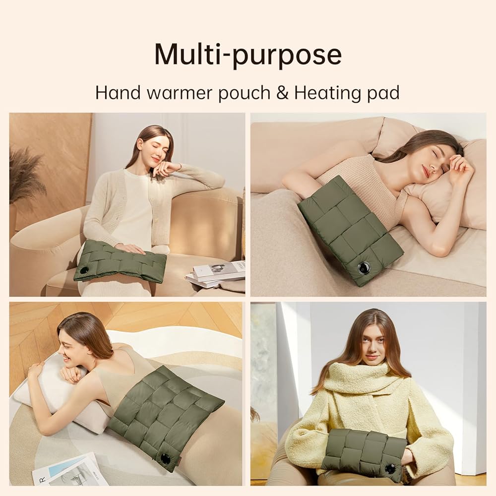 【Multiple Functional Uses】When zipped, it functions as a hand warmer, and when unzipped, it can be used as a heating pad. The heating pad can not only warm your hands but also provide warmth to your back or other body parts. It is suitable for various scenarios, whether you are at home, in the office, or outdoors, providing you with all-around warmth.