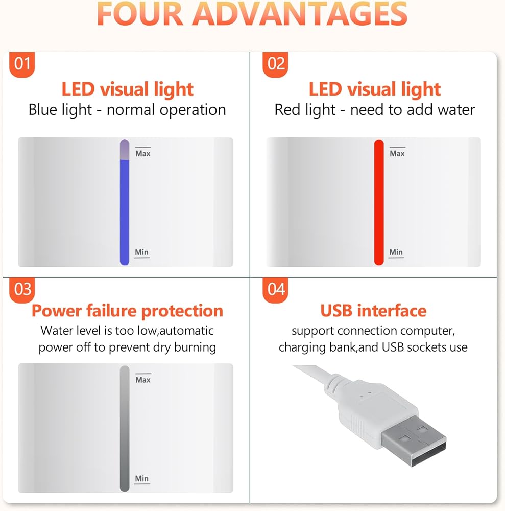 LED INDICATION:Cat water dispenser has a built-in high-tech intelligent chip, which can monitor the water flow capacity independently. Normal water level is blue! When the water level is lower than Min is red! when the water level is too low or no water, the water dispenser will automatically power off!