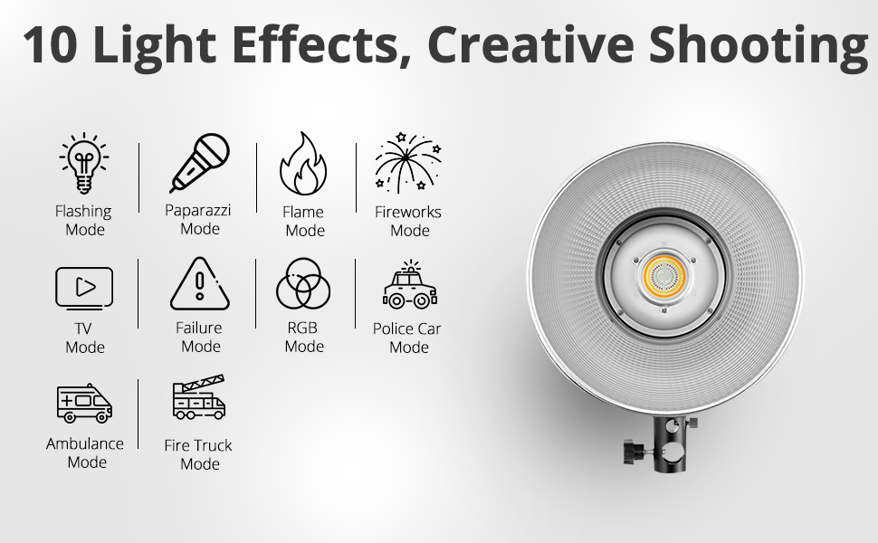 【Full color RGB】 In HSL mode, there are 360 kinds of colors and 100 adjustable saturation levels, and various colors can be changed. At the same time, 10 kinds of different shooting effects are integrated?Create more exciting lighting effects