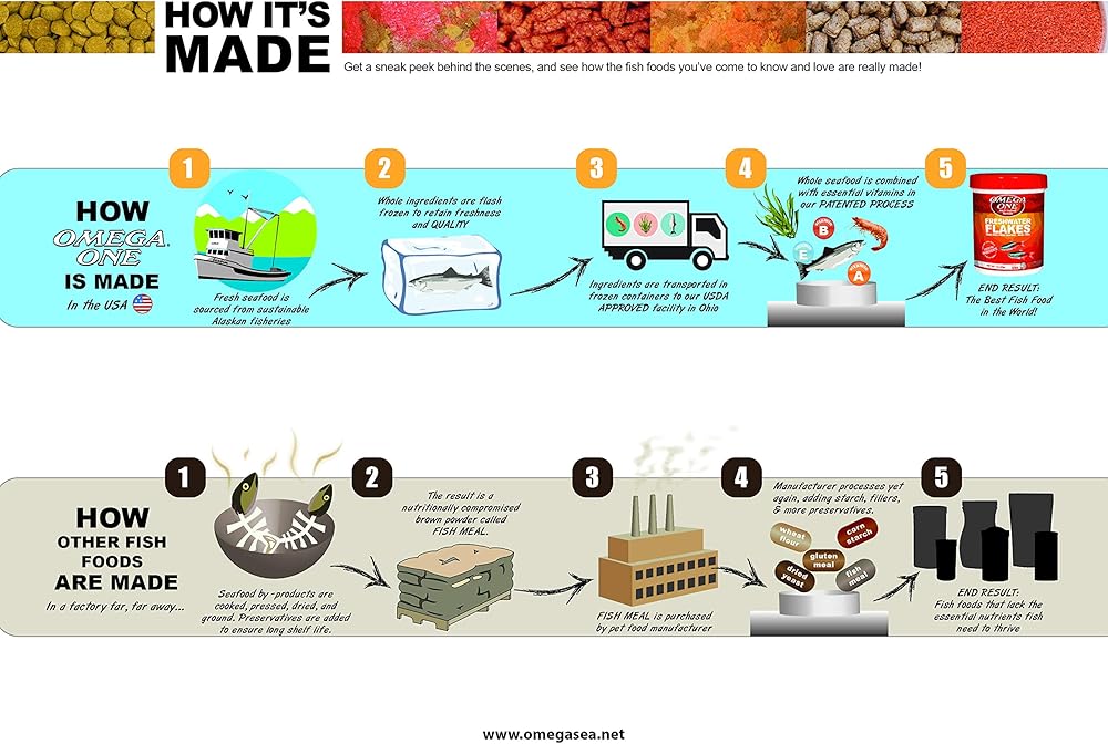 حافظ على خزان نظيف: رقائقنا فائقة الألوان غير قابلة للذوبان بشكل طبيعي، مما يقلل من تلوث المياه، كما أنها تحتوي على نشا أقل بكثير، مما يقلل من فضلات الأسماك.