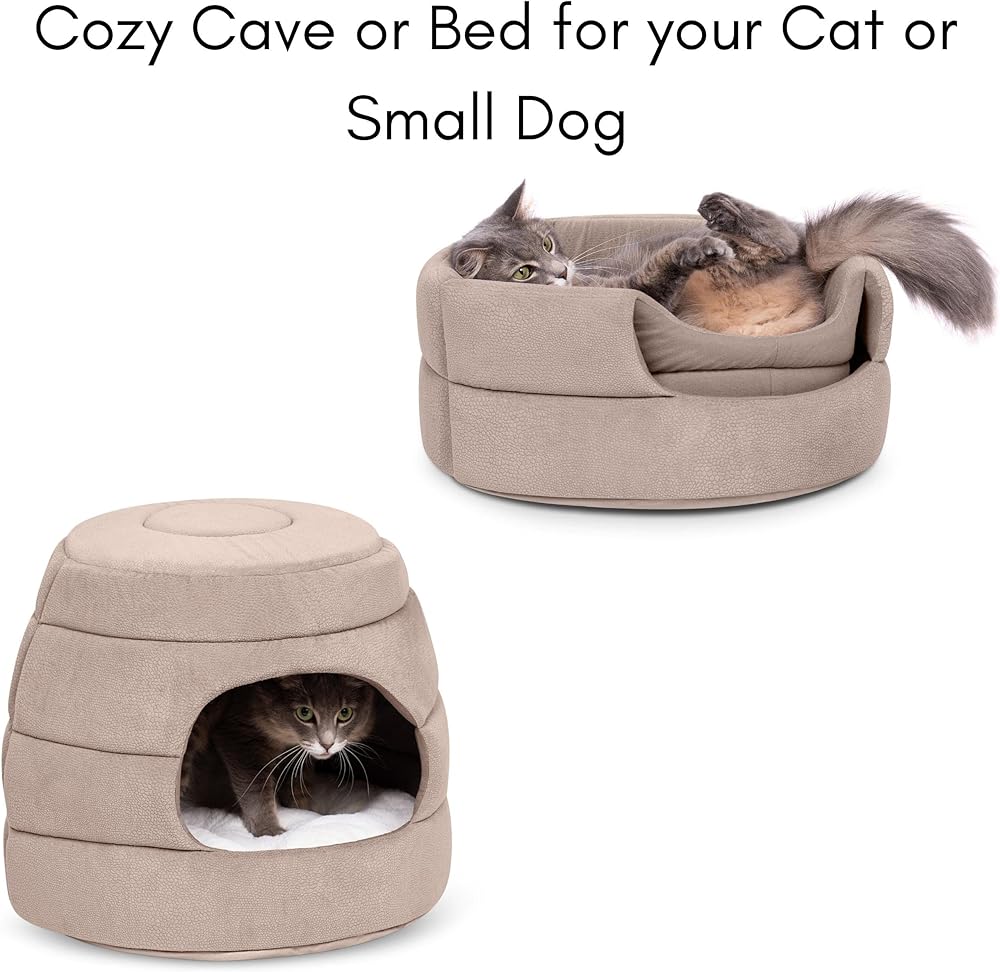 MULTI-FUNCTIONAL PET BED or CAVE: 2-in-1 foldable design can be used as a cozy, pop up cave or flattened into a bed with plush insert