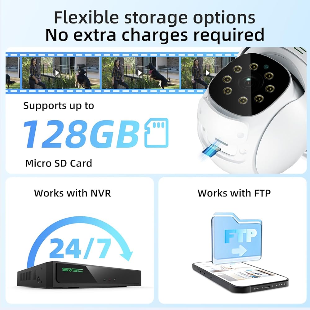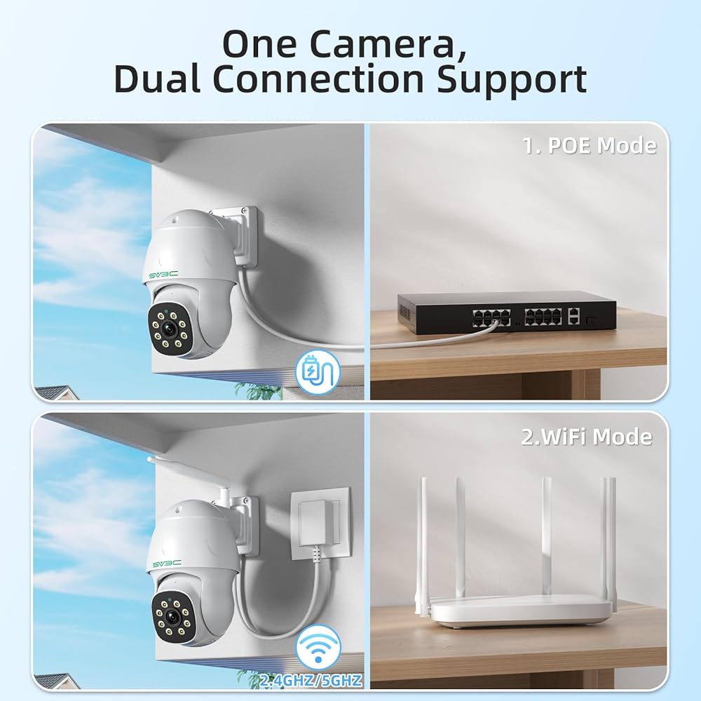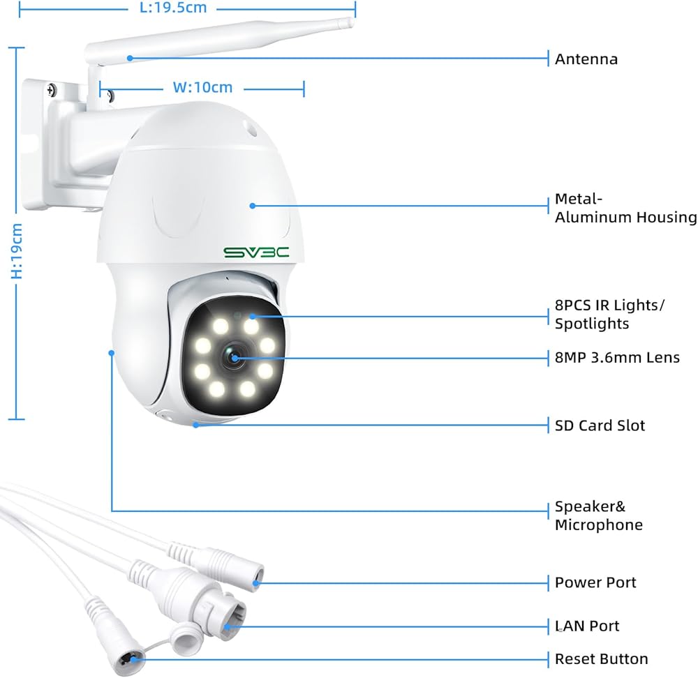 【Micro SD Card Recording & Support Phone, PC, and iPad】: This SV3C 8MP POE camera supports up to 128G SD card and 24/7 all-day recording, alarm recording as well as video playback and download. So this 4K POE camera can give you enough sense of security! And SV3C IP camera supports the connection of mobile phone, computer and iPad. So you can choose multiple connection methods! If you have any question about the security camera, please feel free to contact SV3C by your Amazon order.