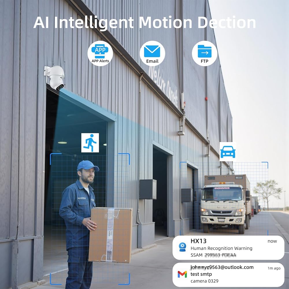【Motion Detection & Timely Alert】: Want to have humanoid/vehicle/pet detection and alert? Try this POE Outdoor Camera! Smart motion detection makes the POE Outdoor camera relatively reduce false alarms! You can choose to identify only people, people and cars, or people and pets and Custom motion detection area and adjust motion detection sensitivity to reduce false alarms. If you turn on alarm linkage, it will remind you in time through CamHiPro APP or Email or FTP when detecting the motion.