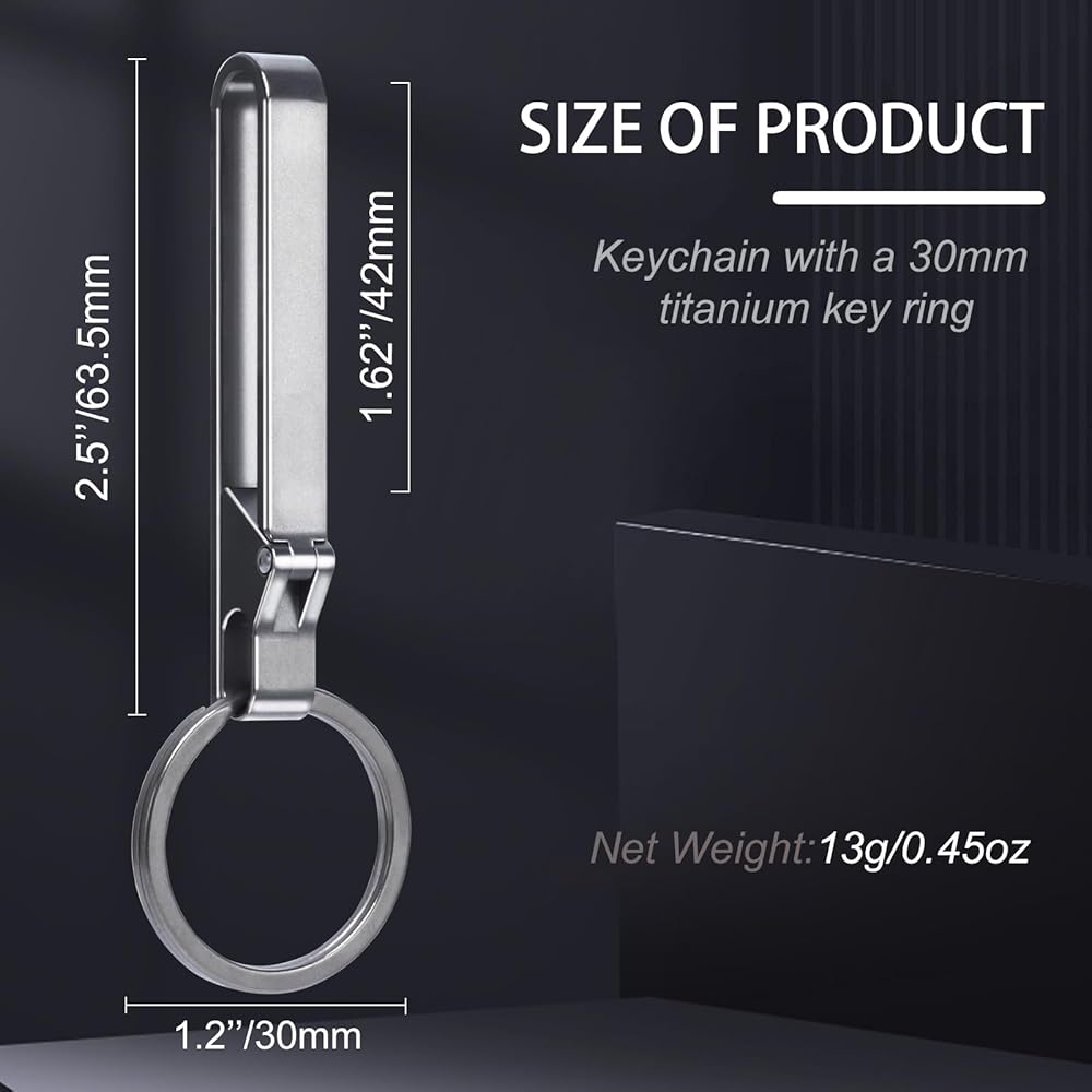 HEAVY DUTY-Key clip with a 30mm titanium key ring,you can hang your house key, car keys, EDC tools,outdoor set and easily hook them in your belt or pocket.