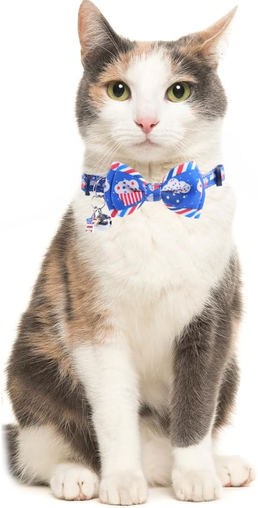 This collar is made of export durable fabric,smooth surface,very comfortable and soft. It is very novel,unique and special.The pet bowknot collar makes your cat more pretty,lovely and fashionable.The USA American Flag and star pattern bring patriotic atmosphere in party.Applicable Occasion: Memorial Day, 4th of July Independence Day and any other patriotic day of the year etc.