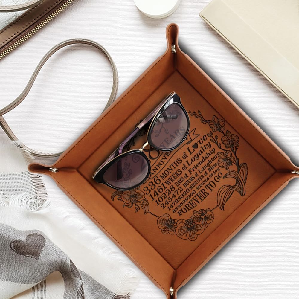 ❤️These Engraved Leather tray Keepsake are a wonderful addition to a home or office . Orchids represent love, luxury, strength and beauty. This Engraved Orchids design, thoughtful and unique gift would be especially perfect for a couple celebrating their 28 years anniversary. "Orchid" is the Contemporary/Modern 28th anniversary Gift.