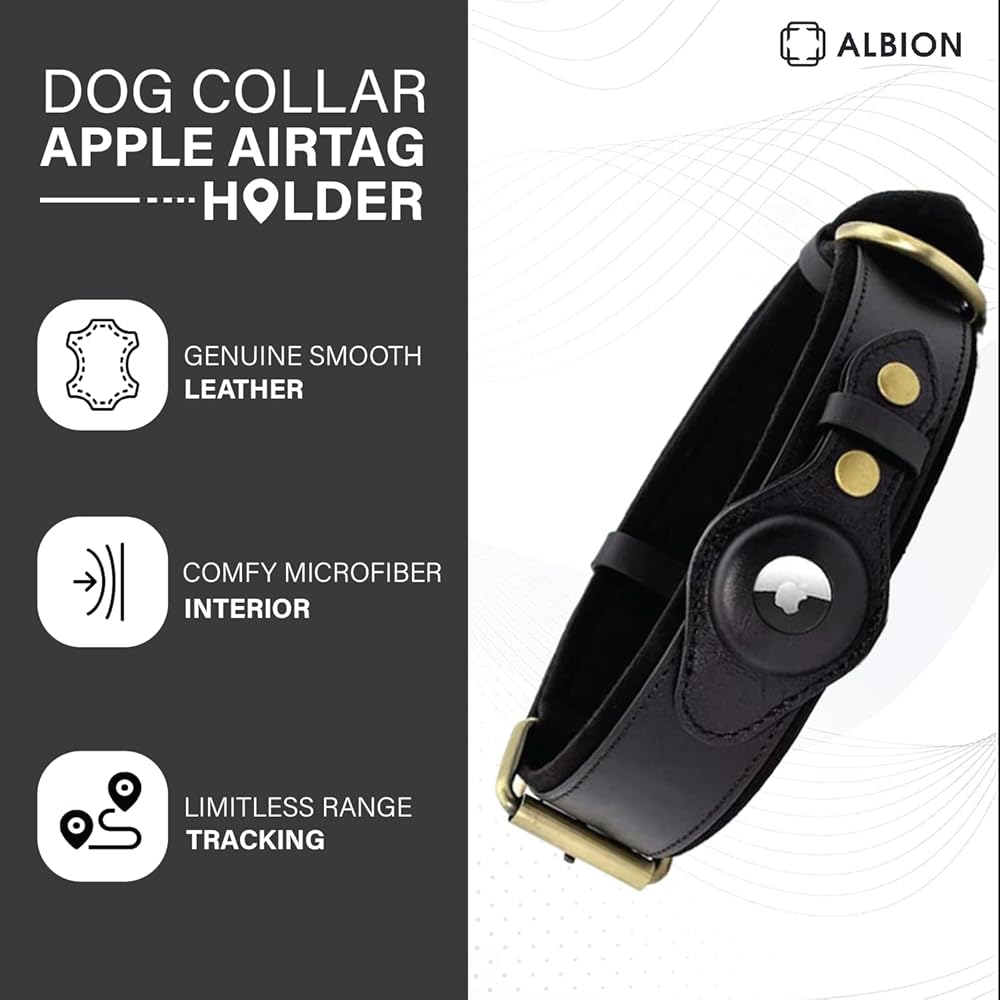 AirTag Dog Collar for Apple AirTag – Leather Dog Collar with Apple AirTag Holder – Smart Collars for Dog – GPS Dog Collar – Dog Collar with Airtag Holder (S, Black)