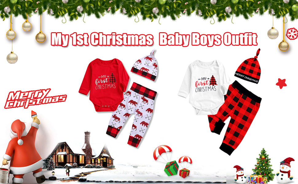 🎄🎅Super Comfortable Fabric: My first Christmas baby boy clothes are made of cotton blend, soft, warm and skin friendly, newborn boy outfits will not hurt your baby's skin, your boy can enjoy Christmas to the fullest