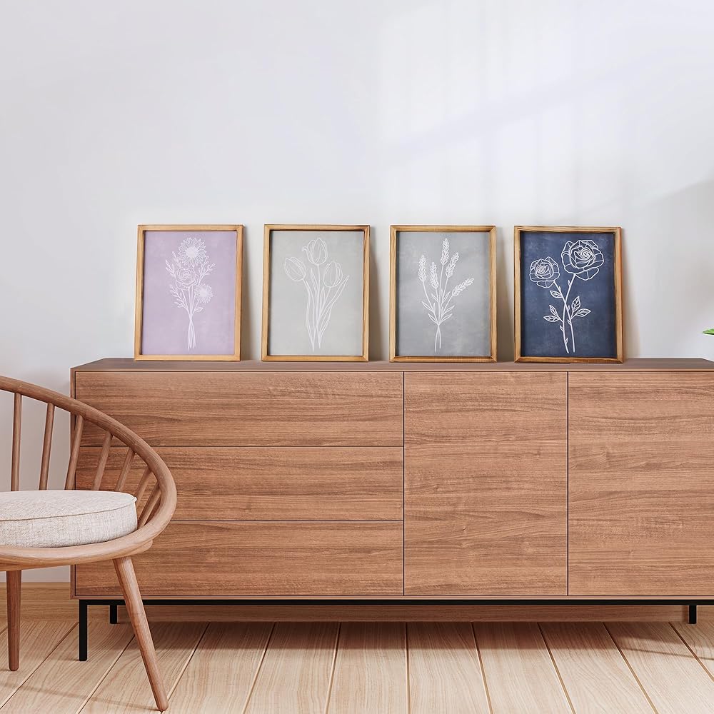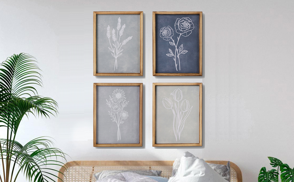 【SET OF 4 MINIMALIST MODERN WALL ART DECOR】 This framed wall decor set with botanical floral art can decorate your room in a clean and simple way. Create a space for your home with exquisite, relaxed and beautiful decoration pieces. These botanical floral wall art bring the joyful and calming effects of nature into any home, dorm or office