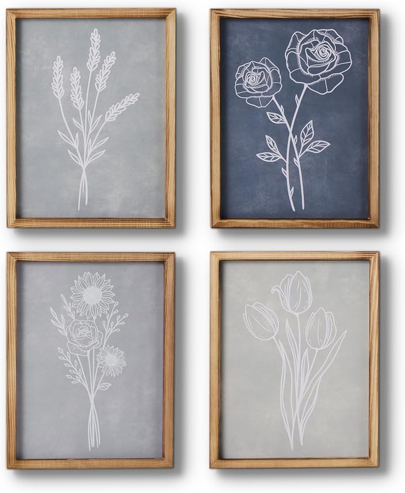 Mokof Framed Canvas Print Wall Art Set of 4, Boho Botanical Flower Prints Art for Home Office Decor, Modern Farmhouse Wall Decor for Living Room, Bedroom, Kitchen, Bathroom