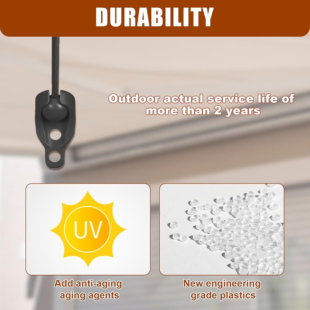 Sun visor component Bungee kit and end cover, weather resistance, suitable for Coolaroo external roller shutter, outdoor roller shutter, roller shutter The bungee jumping kit is widely compatible and suitable for most outdoor blinds, especially the Coolaroo exterior roller blinds. The bungee jumping kit has been redesigned with an enhanced end cover, which is twice the strength of the original. Rugged Hyperelastic material natural latex core provides consistent tension. All components have UV resistance and can withstand the harshest outdoor environments.