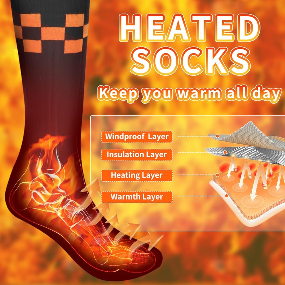 • 【Stay Warm All Day】Heated Socks are designed to keep your toes warm and cozy during the winter season. With upgraded far infrared heating elements, these socks provide uniform and stable heating to stimulate blood circulation and prevent cold and stiff feet.
