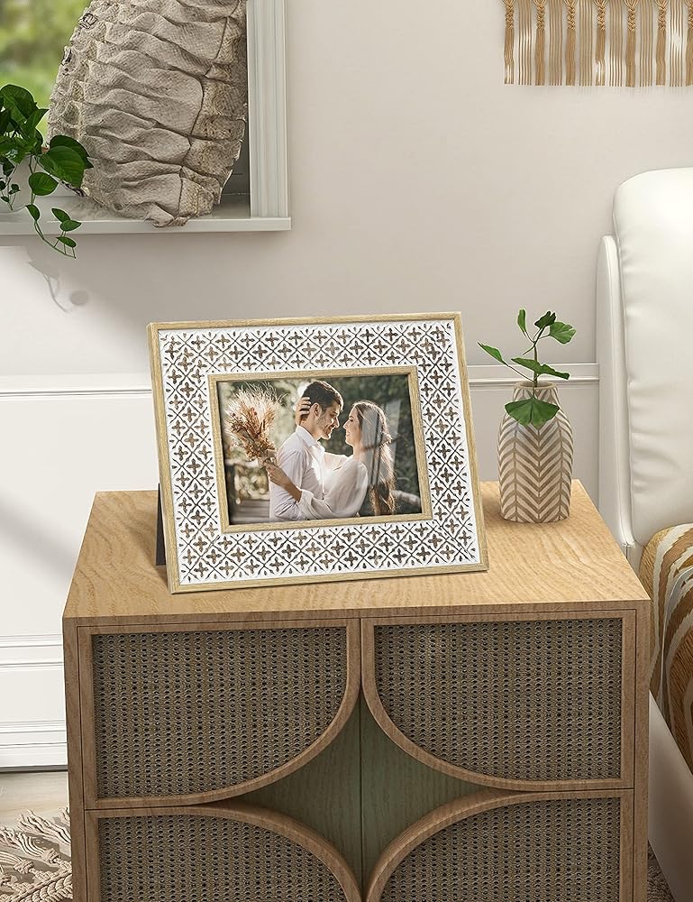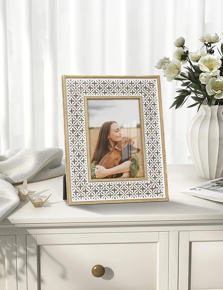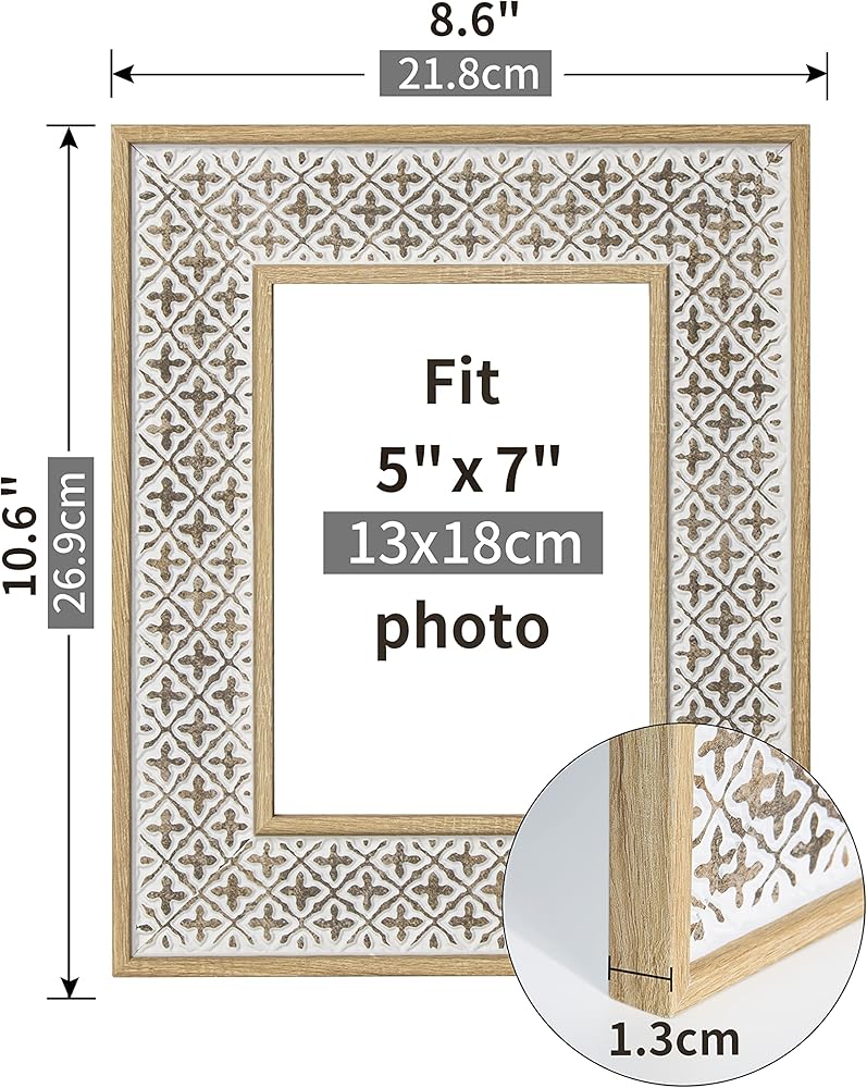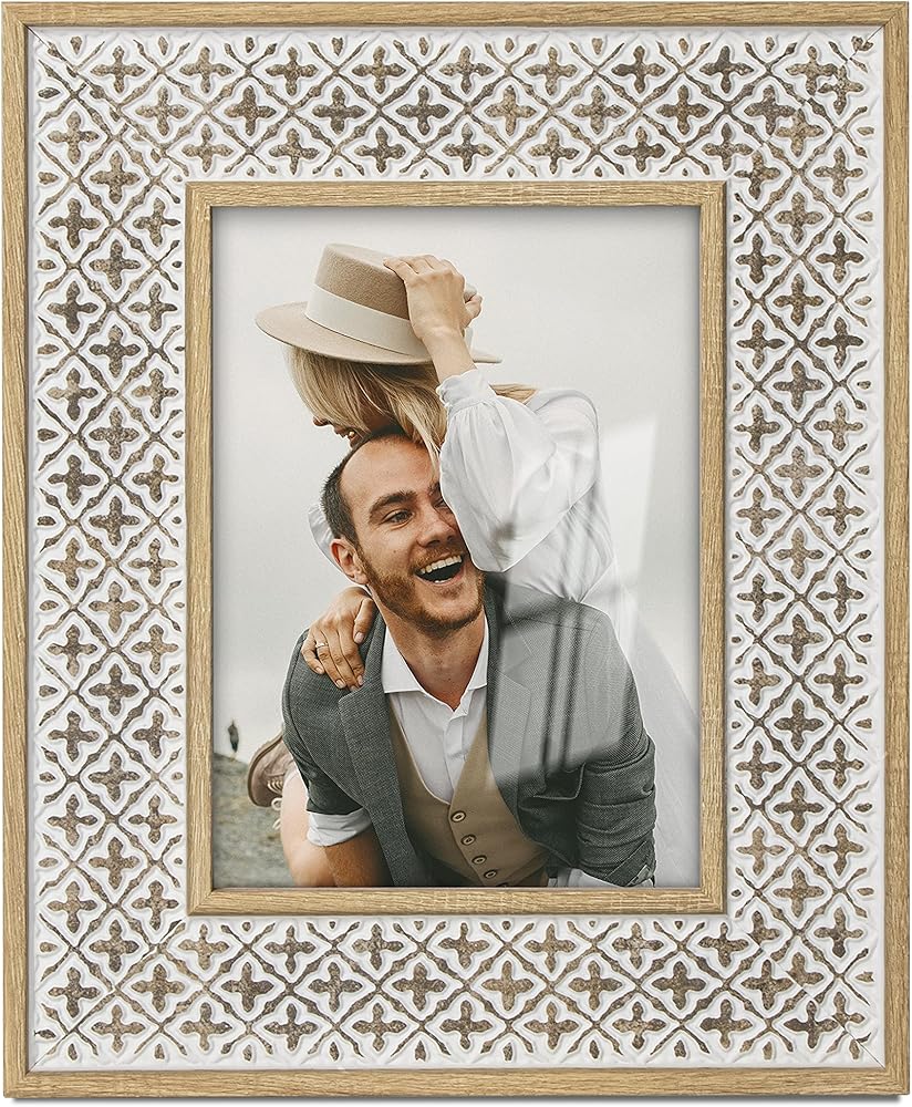 Sonefreiy 5x7 Picture Frame Boho Picture Frames, Moroccan Decor Distressed 5 x 7 Photo Frame Pattern for Desk and Wall Gift for Women Mom Grandma Family Friends