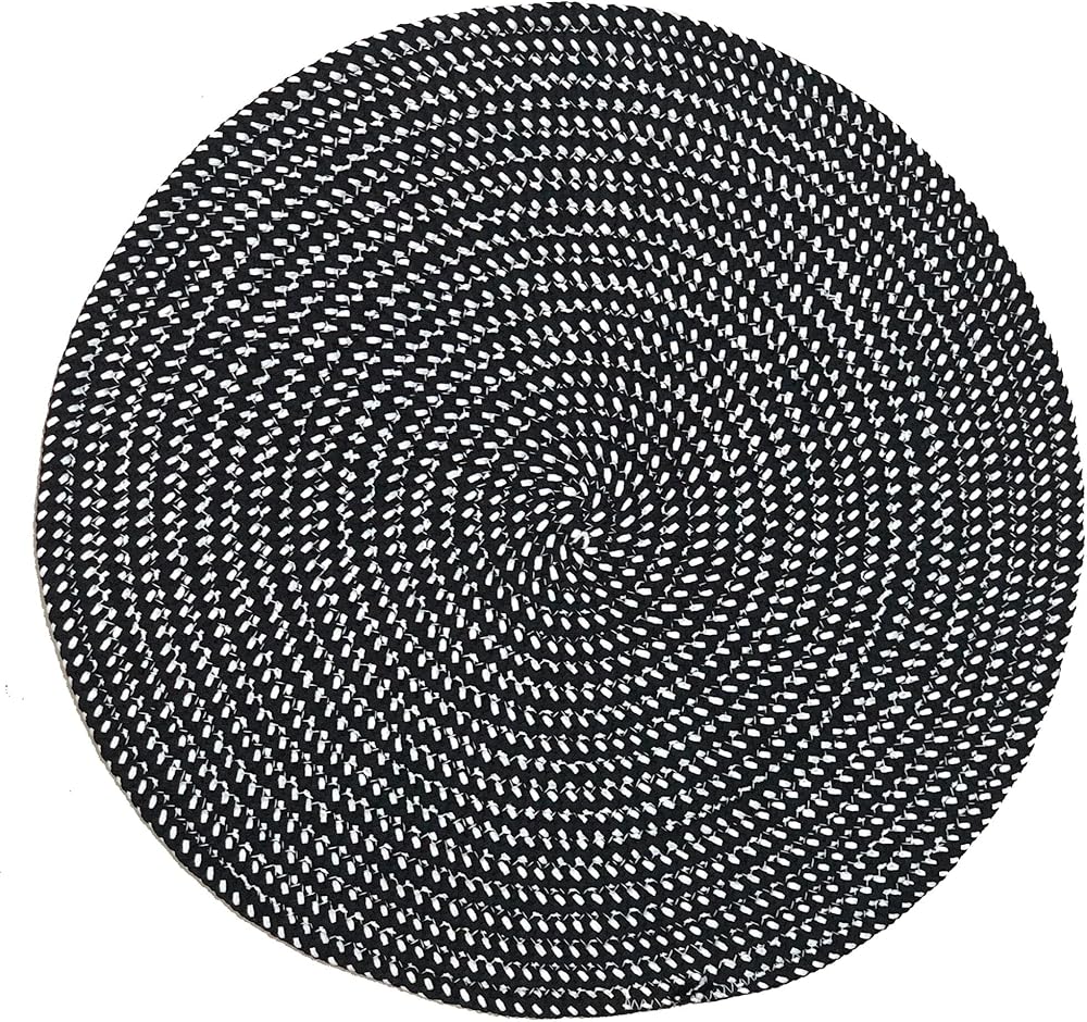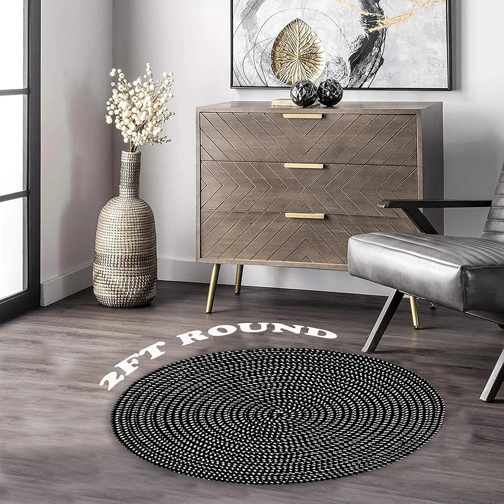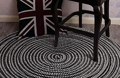Hand Woven Round Area Rugs Living Room Bedroom Study Computer Chair Cushion Base Mat Round Carpet Lifts Basket Swivel Chair Pad Coffee Table Rug(2' Round, Black/White)