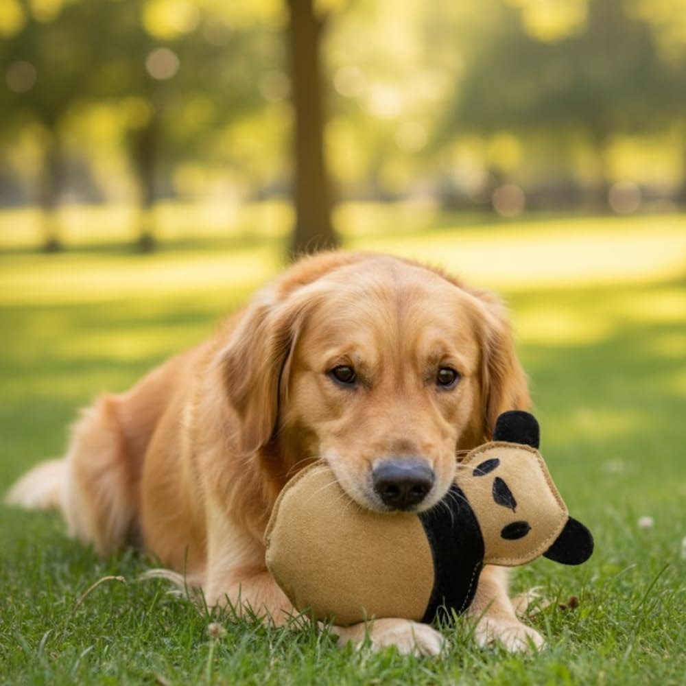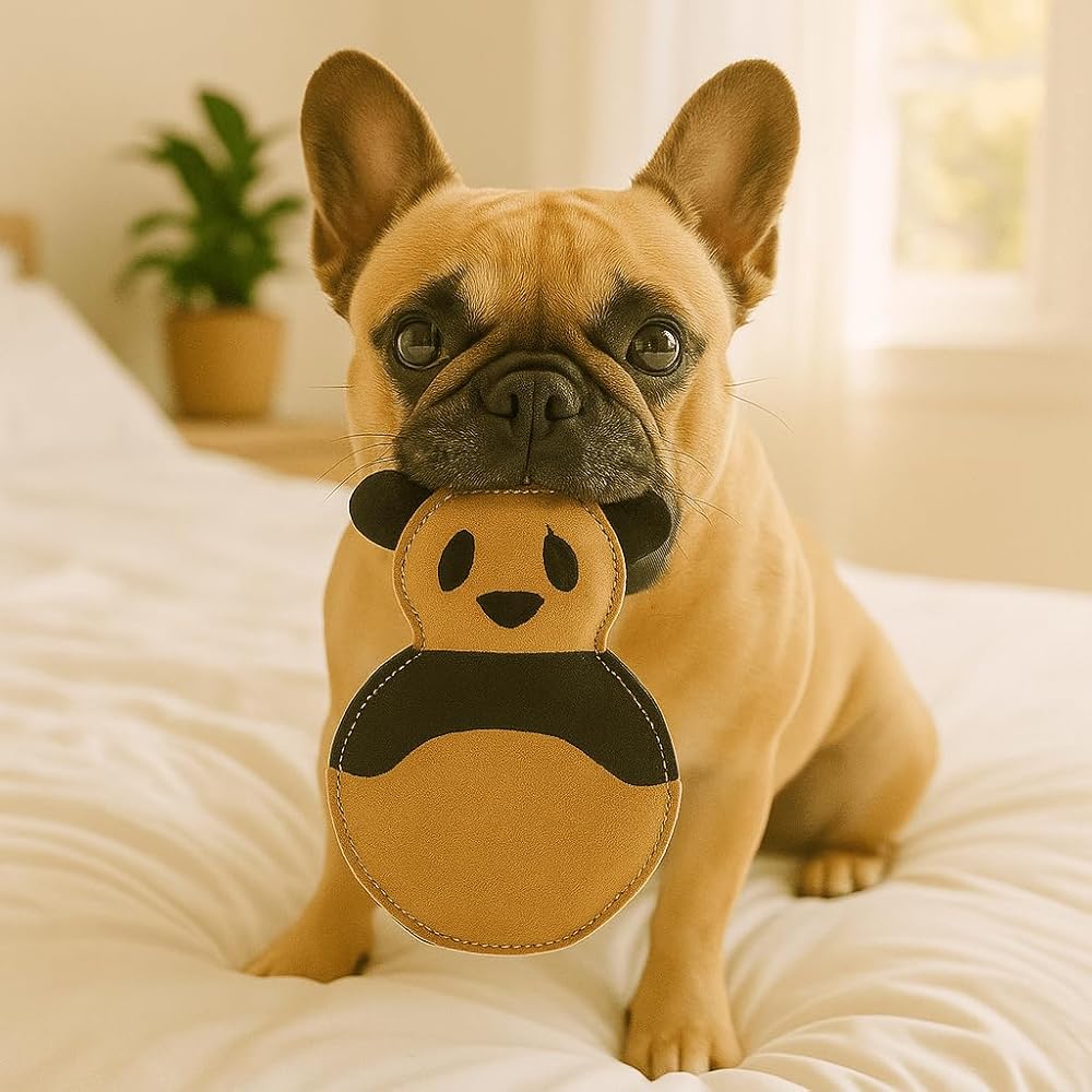 Natural Suede Leather Dog Chew Toy, Panda Shape Interactive Pet Toy for Adult Dogs and Puppies, Durable Design for Daily Chewing, Tug Play and Indoor Training Use