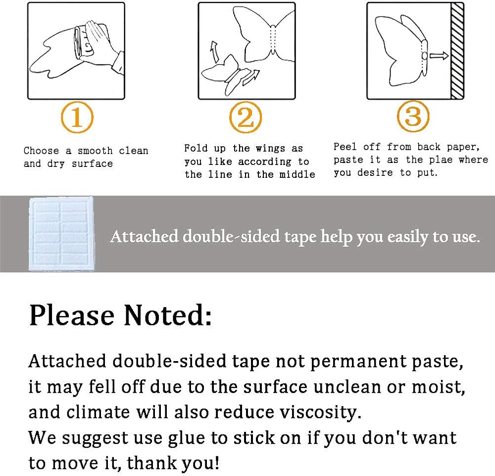✿Easy to use- Wall Sticker can be used on any dry, clean and smooth surface. Butterfly sticker set is a combined product, need glue adhesive strip on it before sticking on the wall. and make their wings lift up. Can stand on artificial flowers