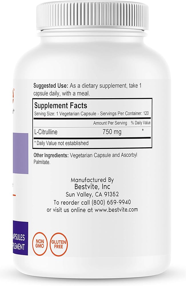 PURE FORMULA: Bestvite L-Citrulline contains no stearates, is non-GMO, gluten-free, vegan, and comes free of unwanted added ingredients. Each capsule contains 750 mg of L-Citrulline.