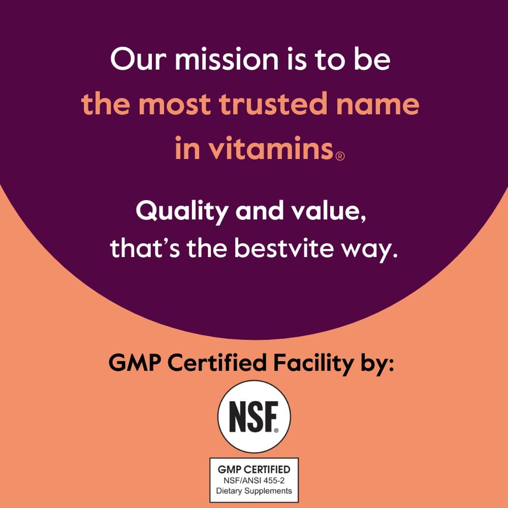 NSF GMP CERTIFIED: Bestvite's facility is NSF/ANSI 455-2 Dietary Supplements Good Manufacturing Practice (GMP) certified. Earning GMP certification from NSF verifies that a manufacturing facility has the proper methods, equipment, facilities, and controls in place to produce dietary supplement products.
